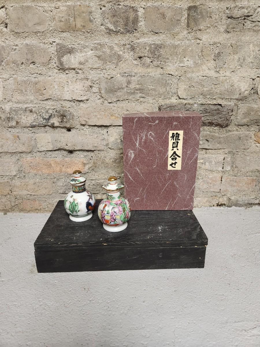 Fantastic Japanese enamel box and a pair of vintage soy sauce dispensers...notice the screw on ceramic lids. Neat