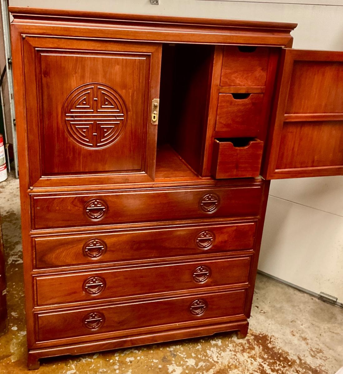 Asian mid century modern gentleman’s chest solid rose wood, very heavy