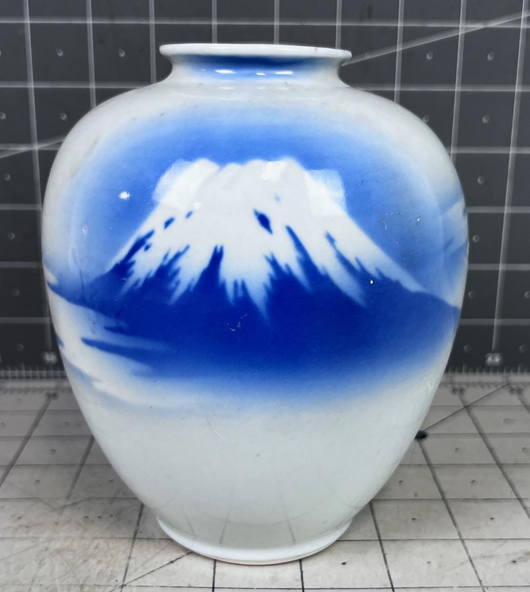 Asian Mount. Fuji Vase with Mountains & Stream Marking
