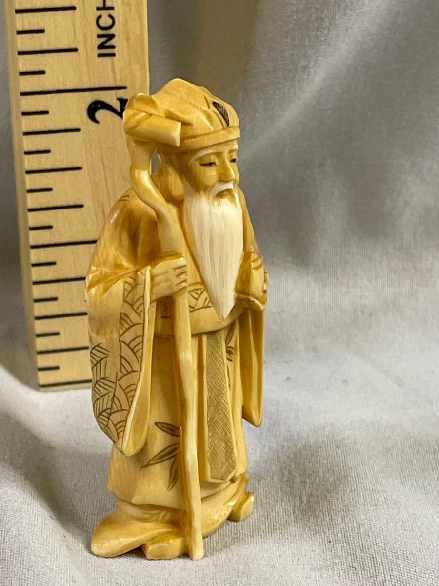 I am not sure what this figure is made of - it has a look of ivory, but I believe that it is actually some type of composite. Quite a bit of detail.<br />