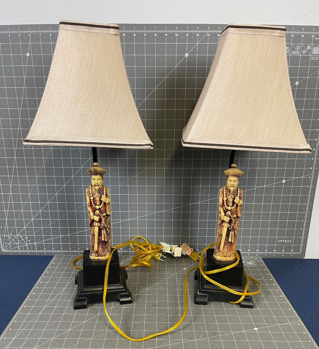 Asian Pair of Lamps, RESIN (Not Ivory)