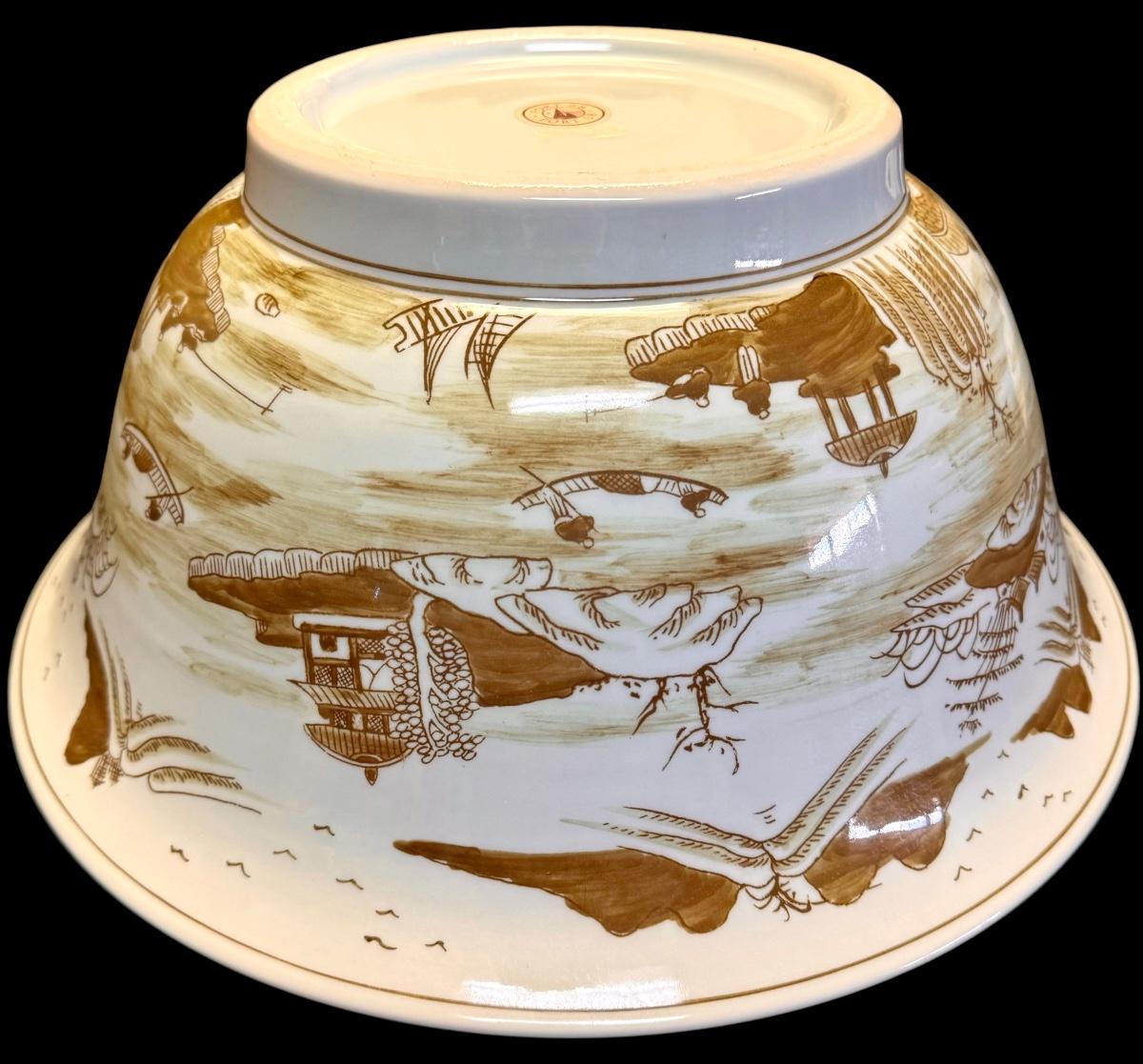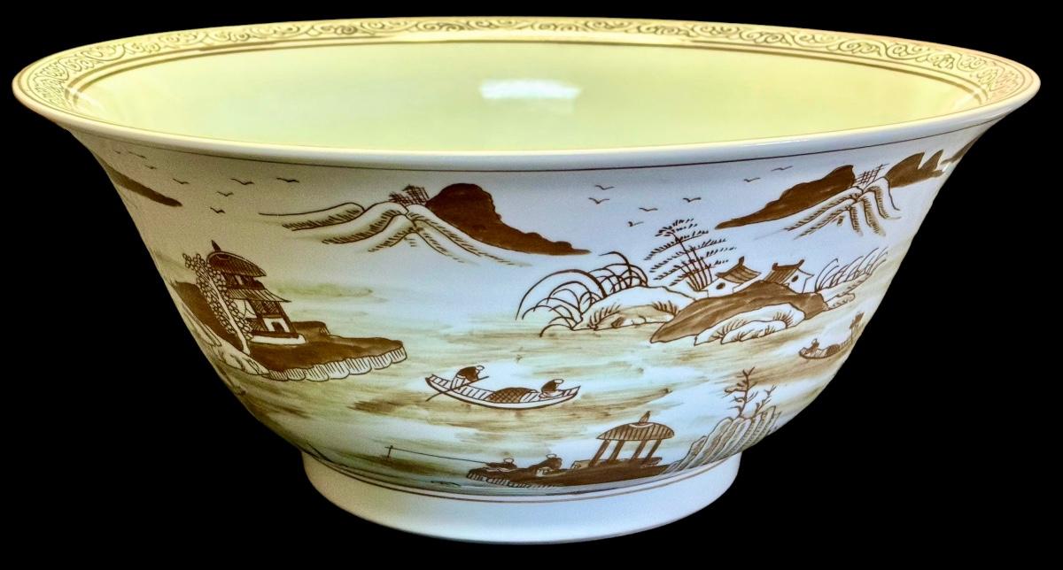 Canton Brown Large Asian Porcelain Decorative Bowl