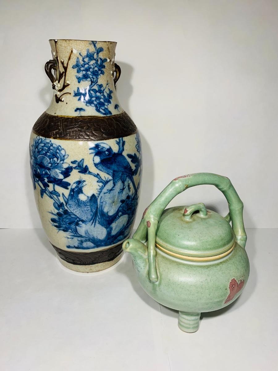 Antique Asian Vase and MidCentury Modern Tea pot. Both signed on base