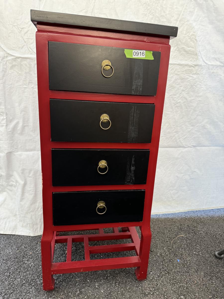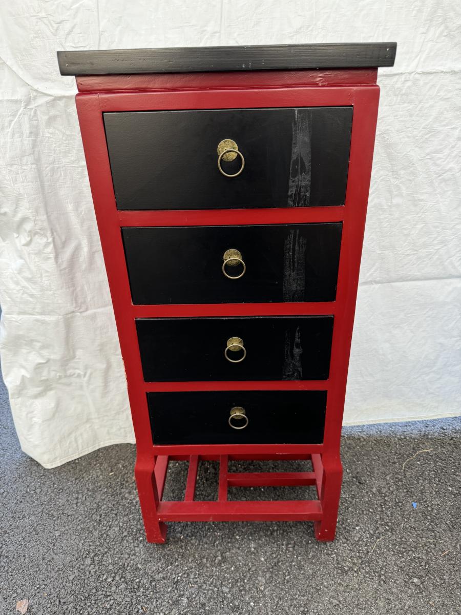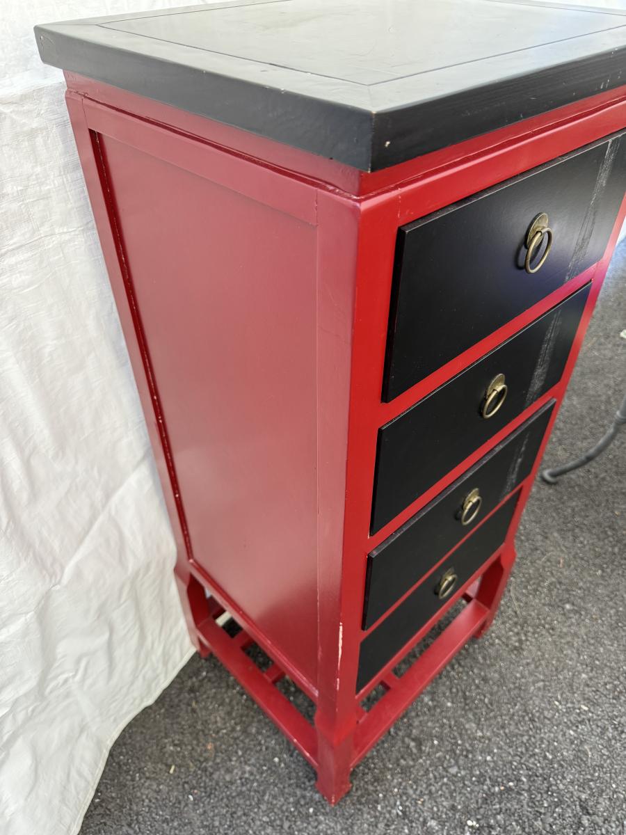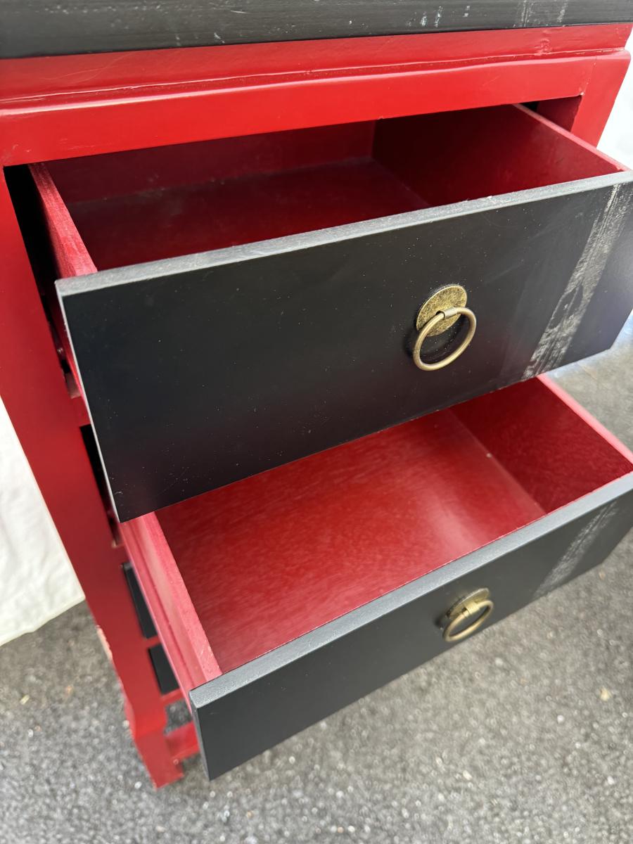 Asian Red & Black Drawer Cabinet 15”x17 1/2”x41”