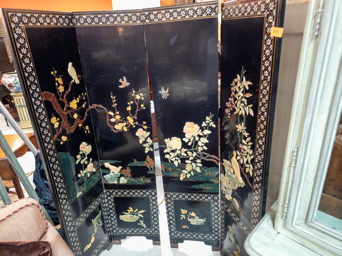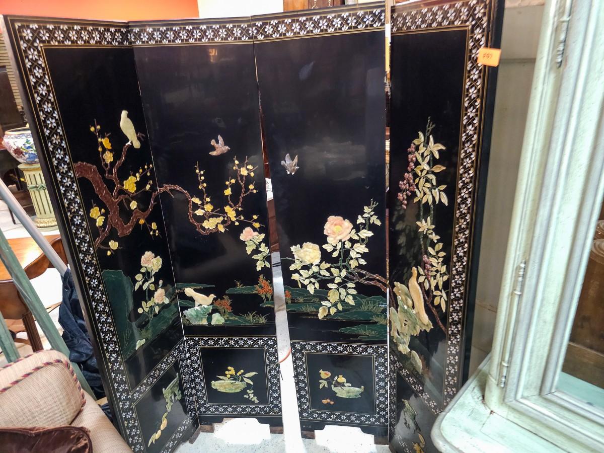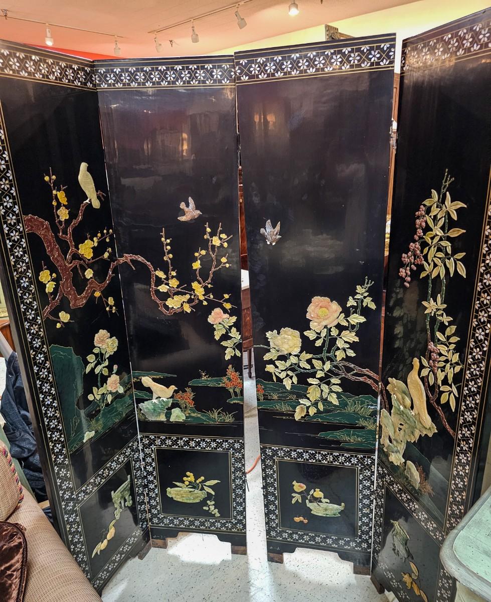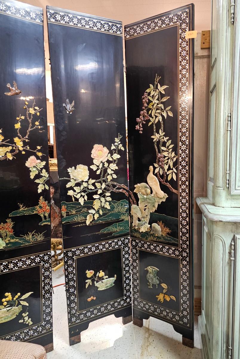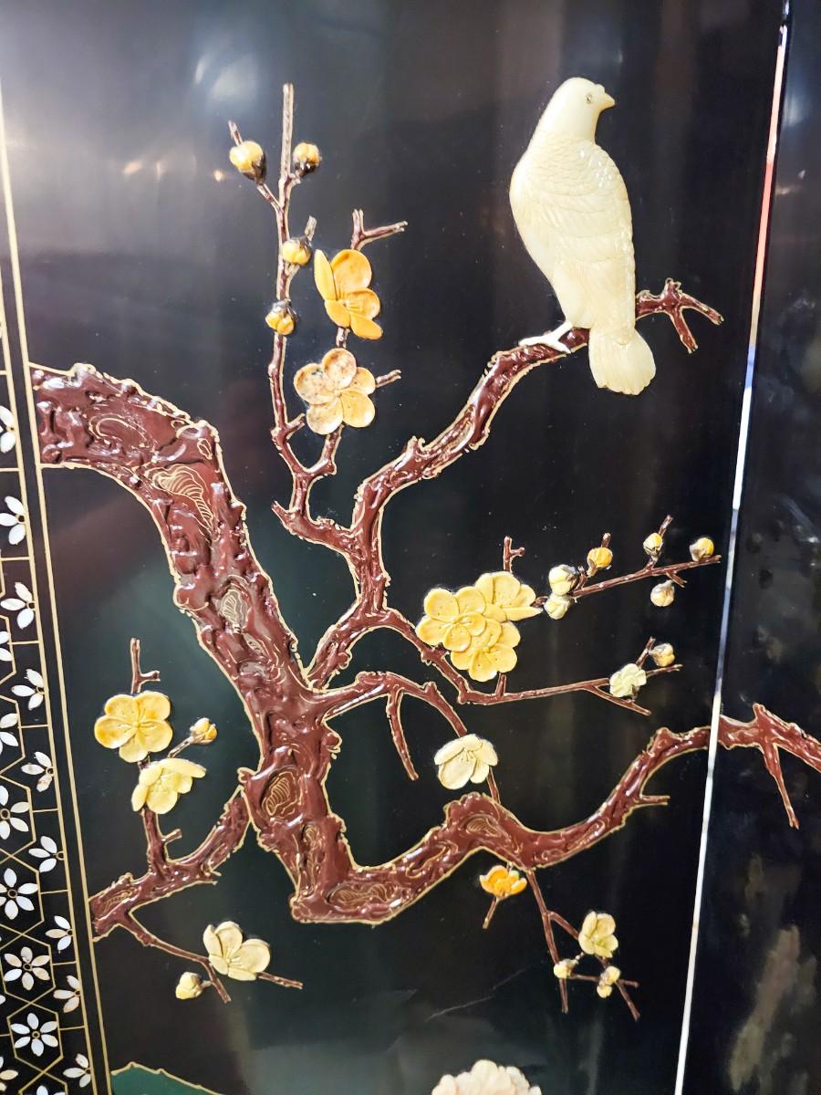 Lacquer screen with hardstone carving, Two pieces, 30" W x 72" H