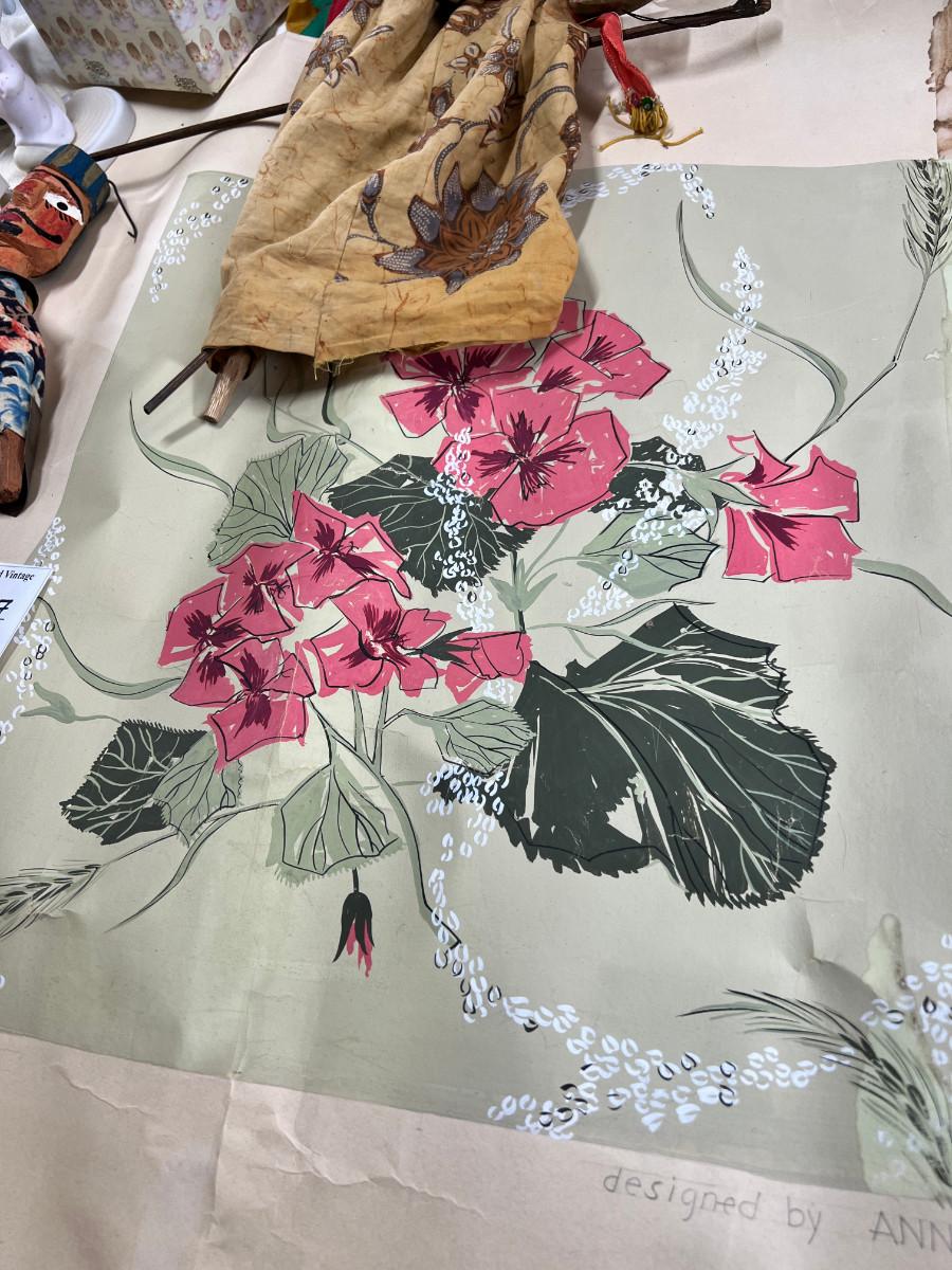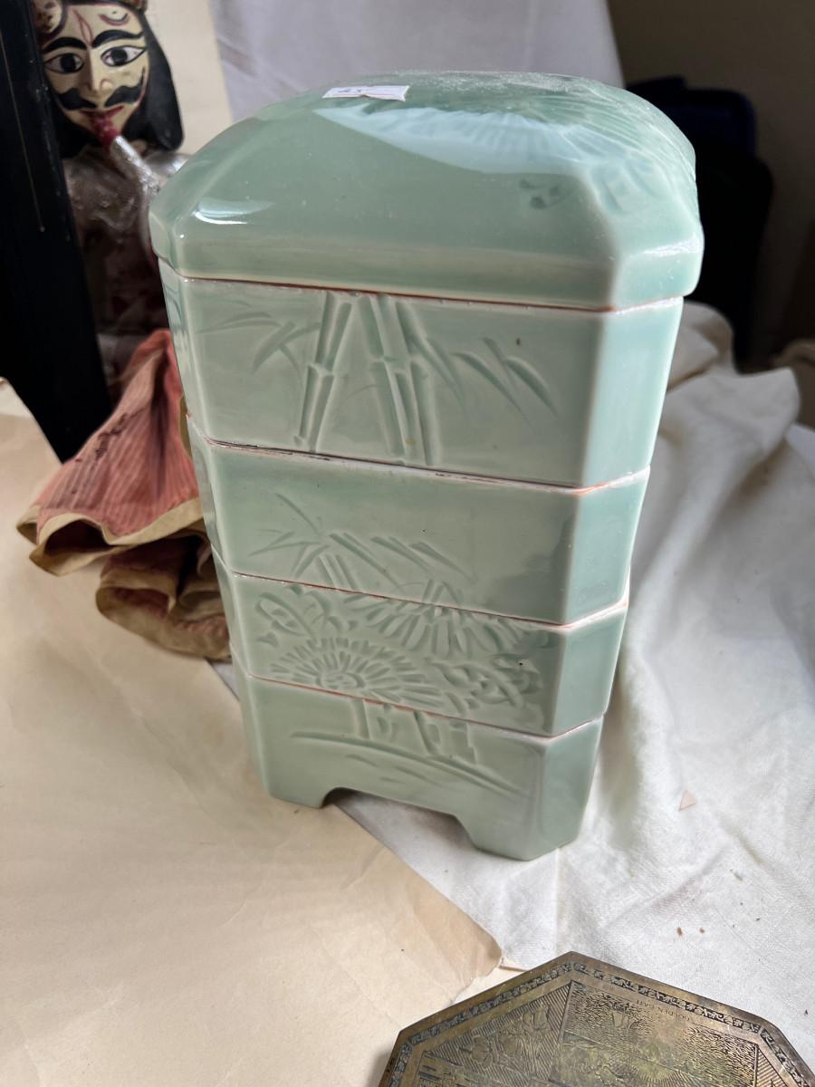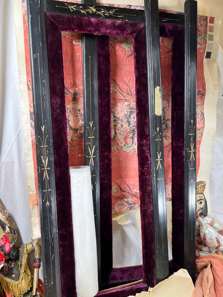 Wallpaper design originals, Asian screen frames with velvet stacking porcelain box