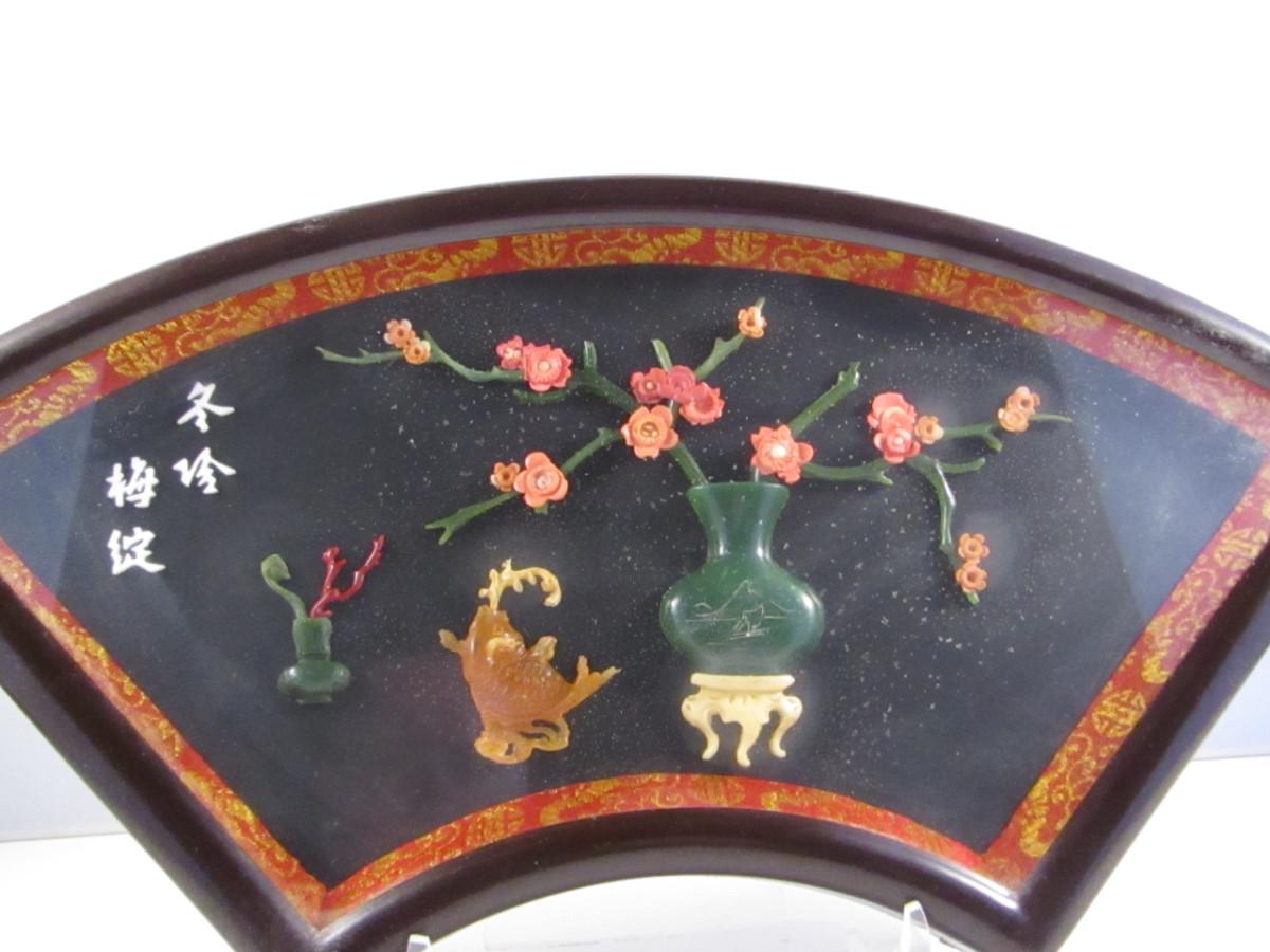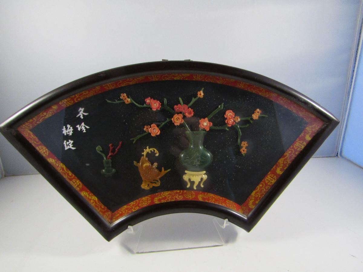Asian Shadow Box with Jade Art- Approx 13 1/2" in Diameter