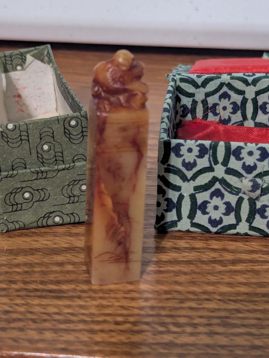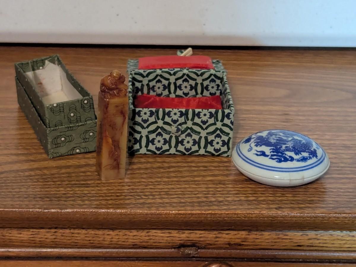 Asian Stamp & Antique Chinese Blue & White Porcelain Ink Box