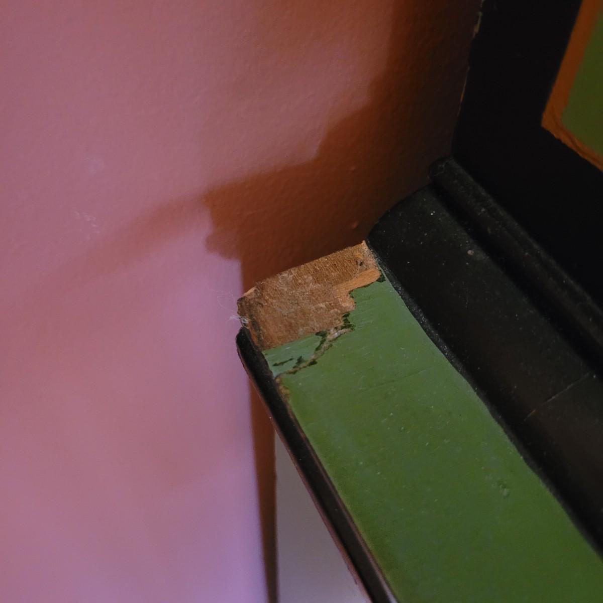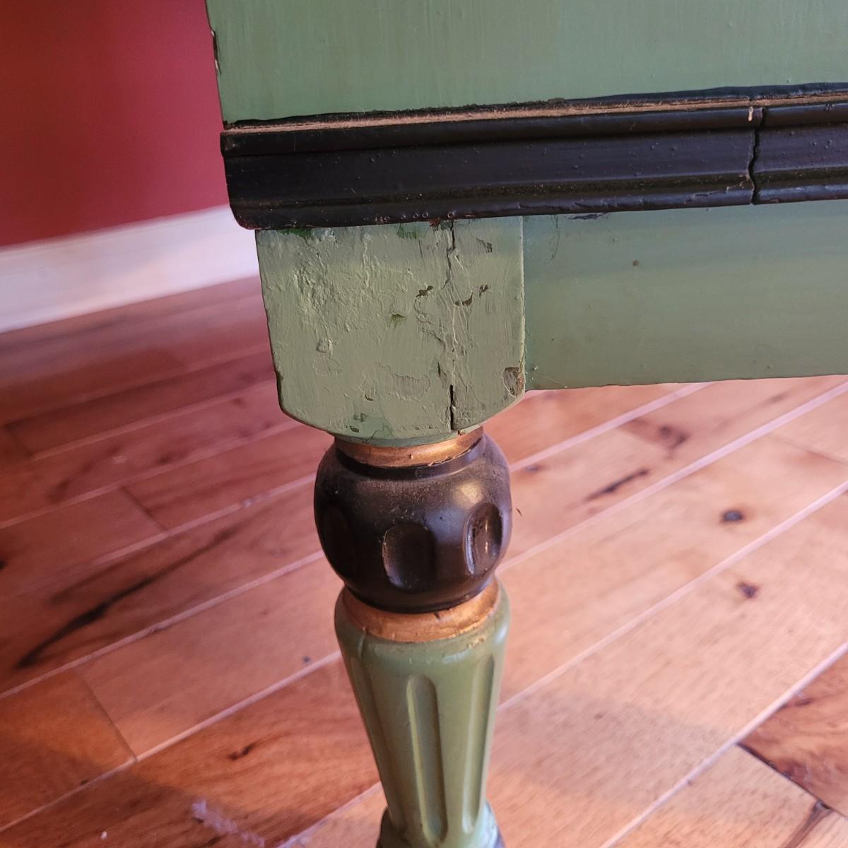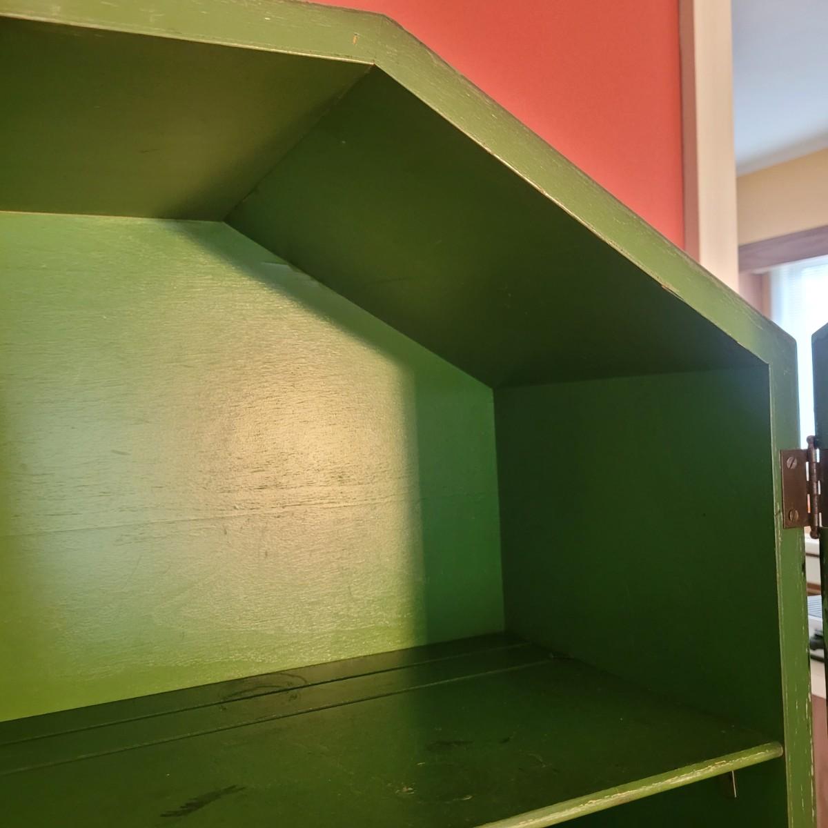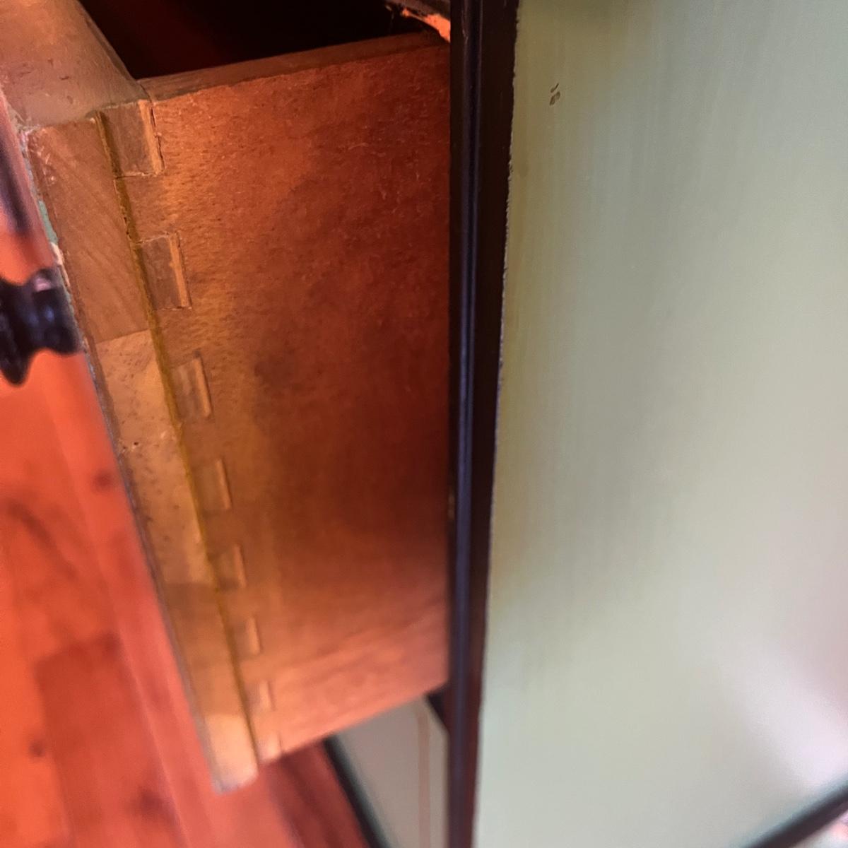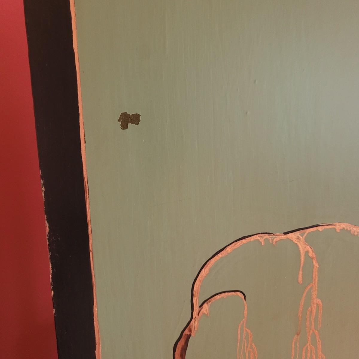 This engraved and hand painted cabinet depicts an Asian-style nature scene with inlaid, carved wooden decor. Drawers have dovetailed construction. No key is included. Note that two front legs are on risers to balance out furniture. Some chips and scuffs throughout (see photos). Measures approximately 33.5” x 14” x 64.5”H. Label states that it is from Al Carlson Mfg. Co. Local pickup only. Winning bidder must bring assistance to help move and load this item due to its weight and size. It is located on the main floor and will not need to be moved up or down any stairs.