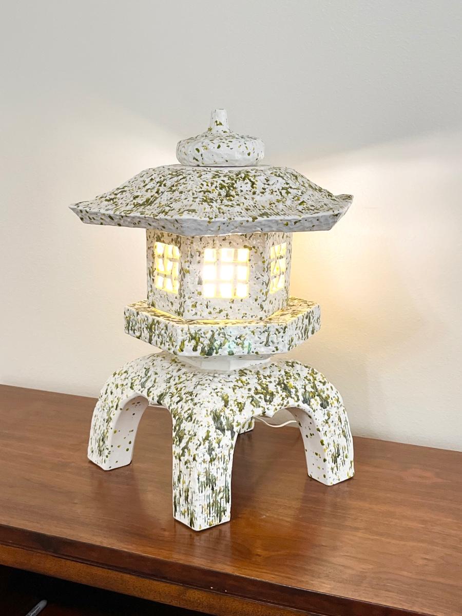 Asian Style Pagoda Table Lamp ~ Four (4) Piece Stacked Ceramic