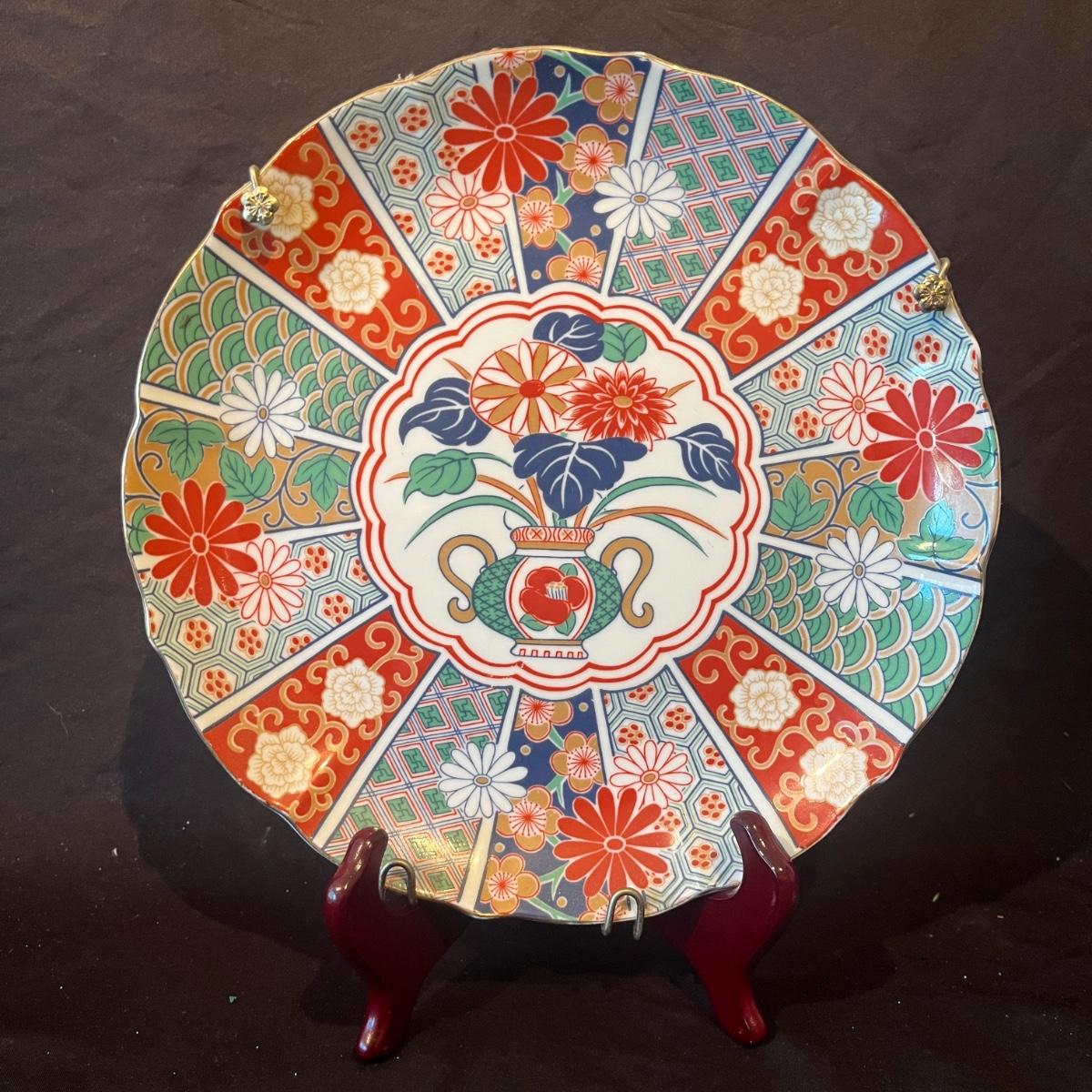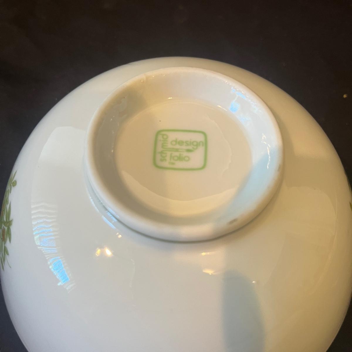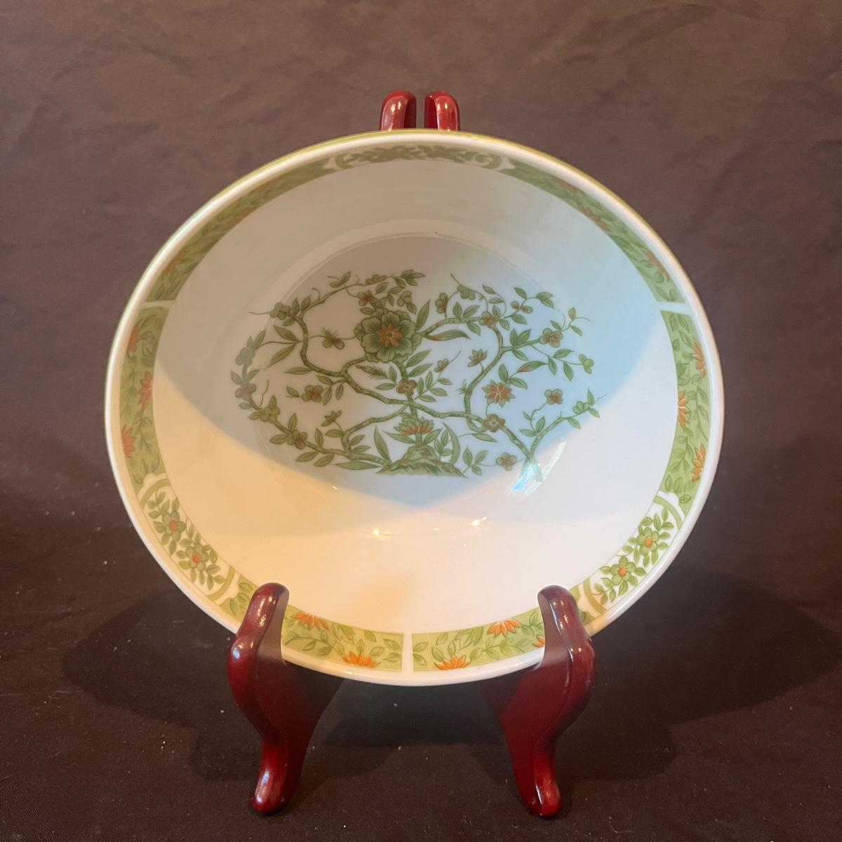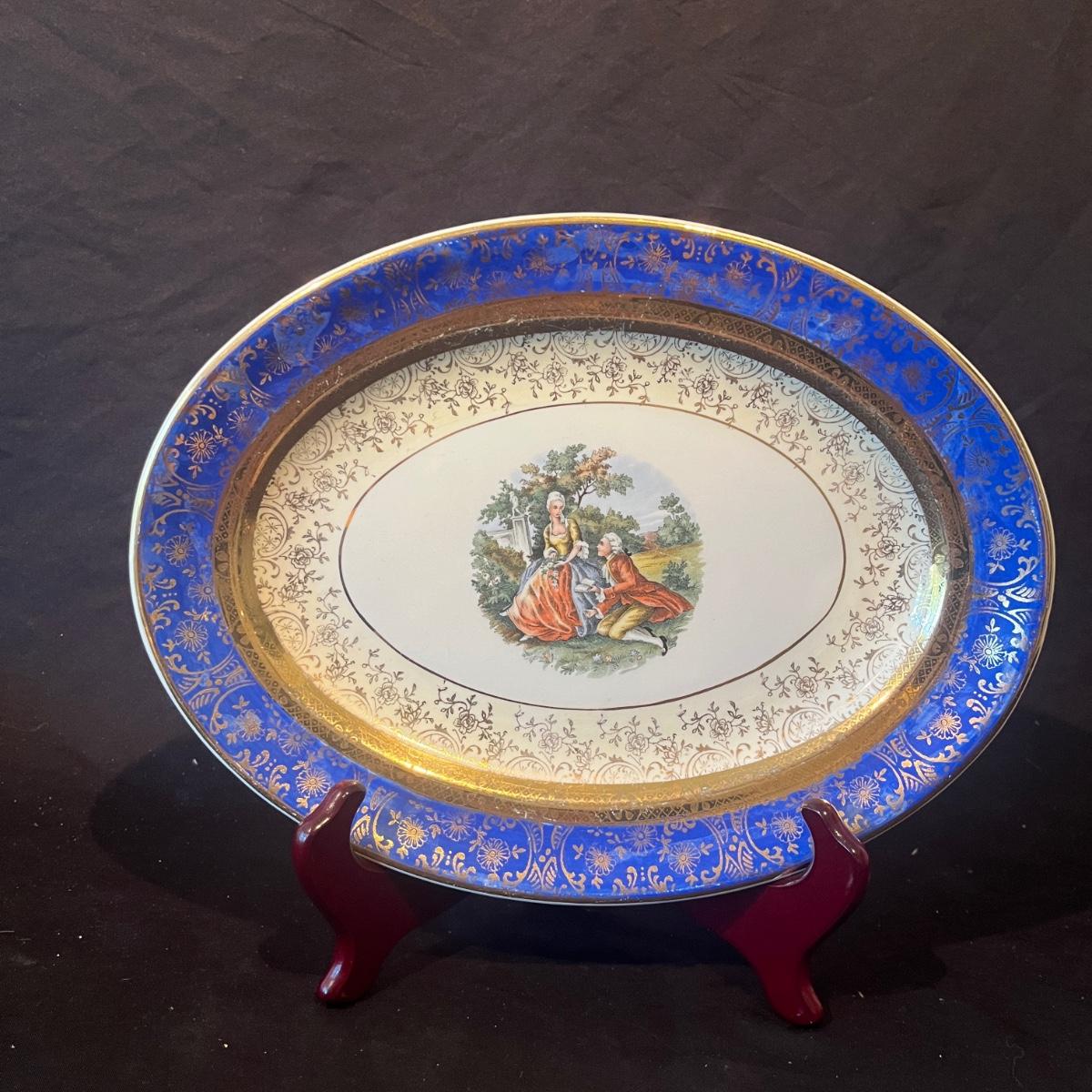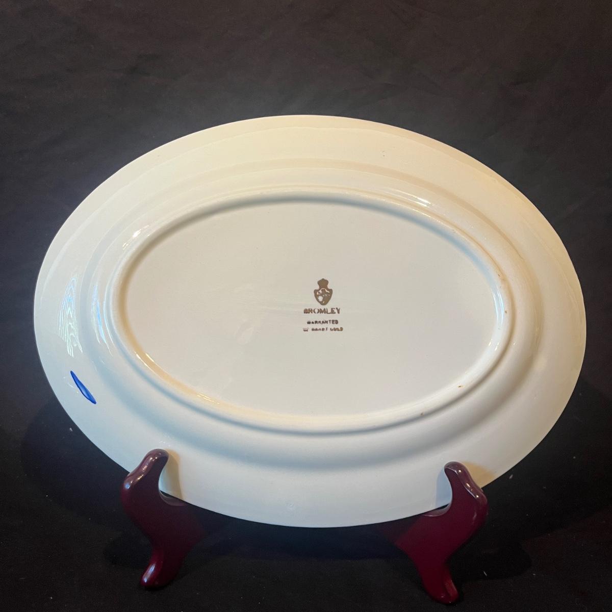 Lot includes two plates, sectioned plate, oblong dish, round dish and a bowl. Round plate measures 10”D.