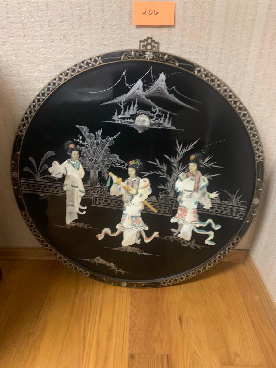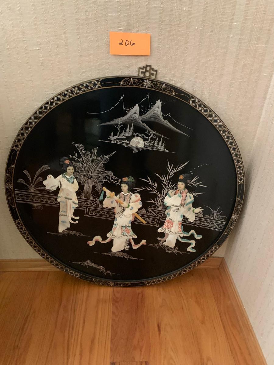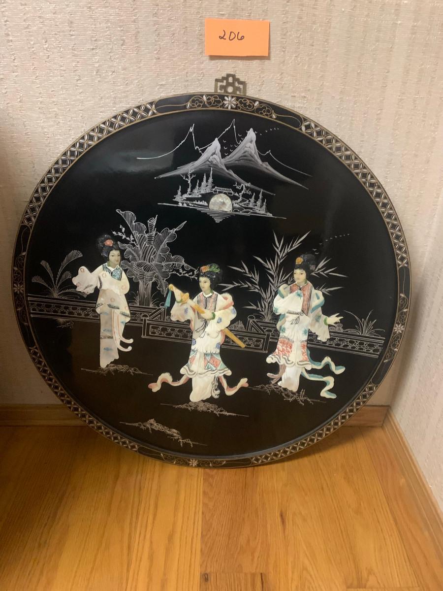 Large 30" diameter artwork with 3 asian women and shell décor possibly