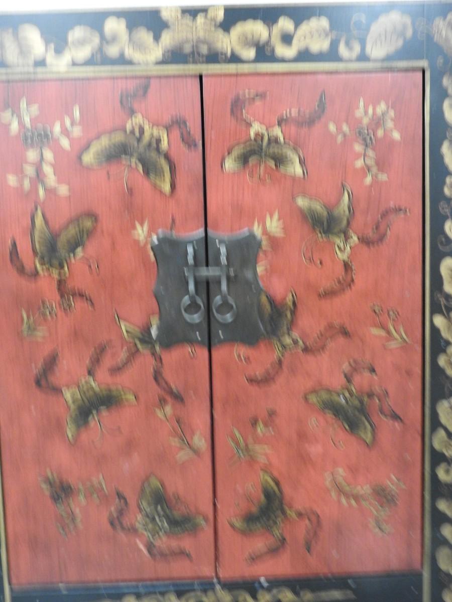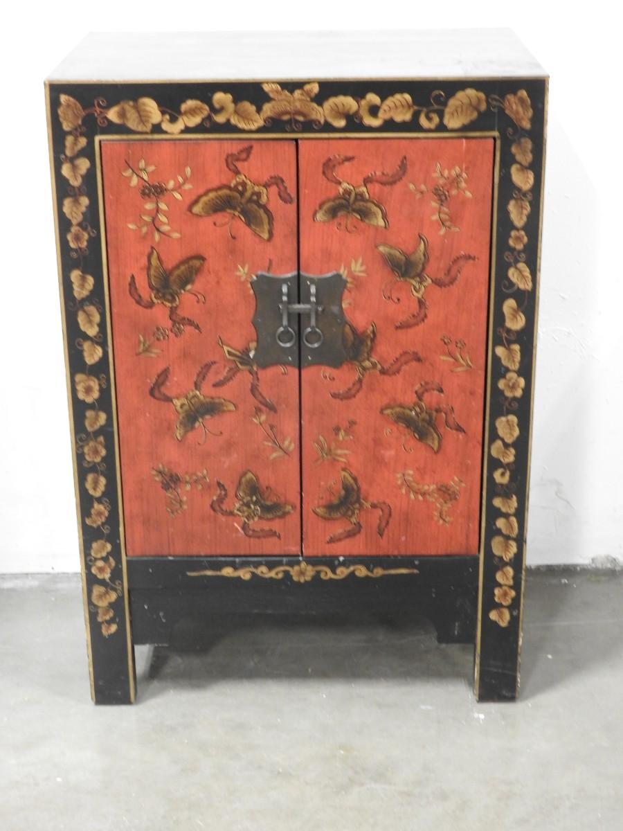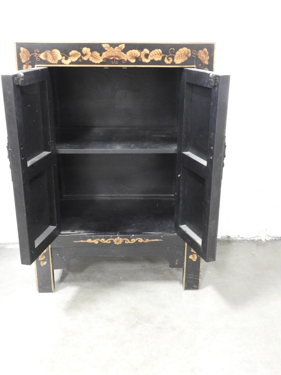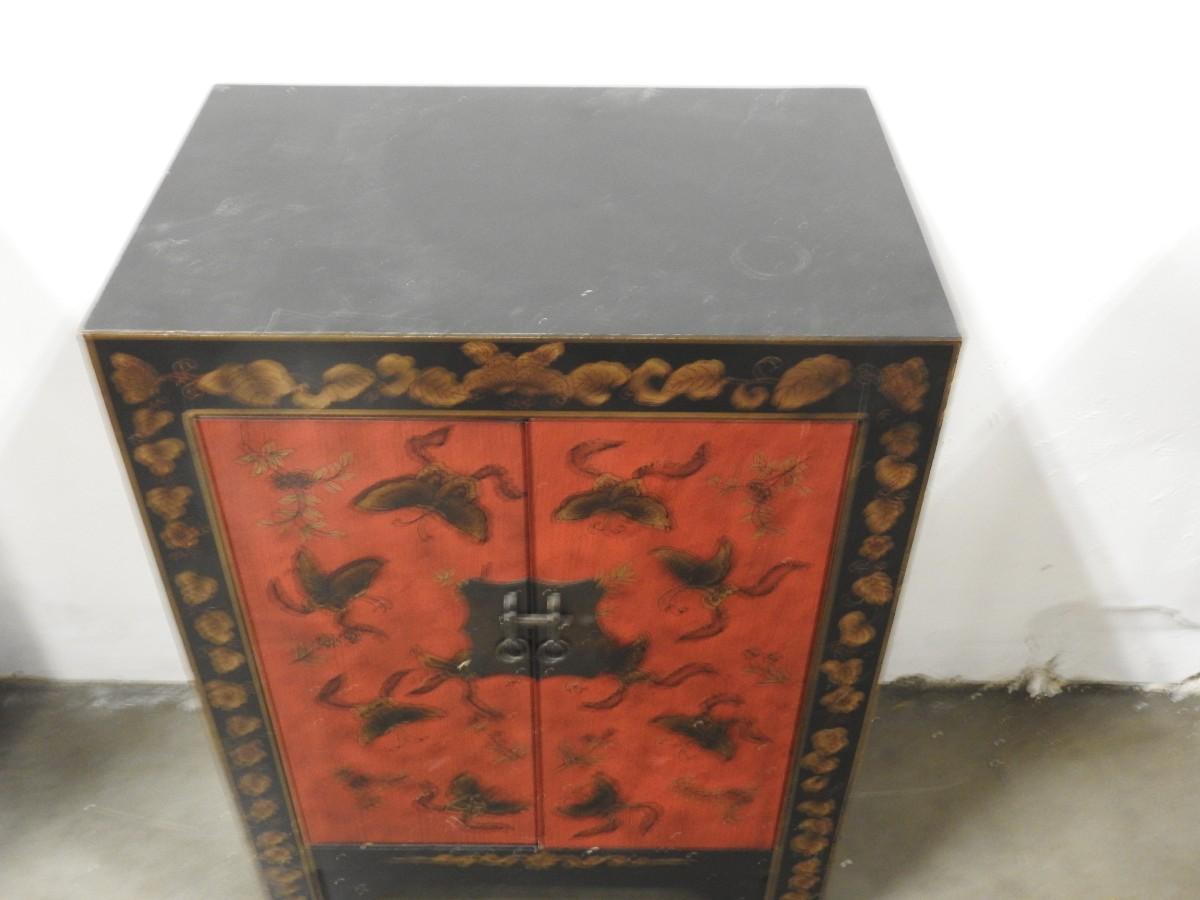 Asian Style Standing Wood Cabinet w/ 2 Shelves, Solid, 33 x 22 3/4 x 15, Beautiful, Good Condition