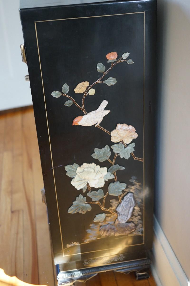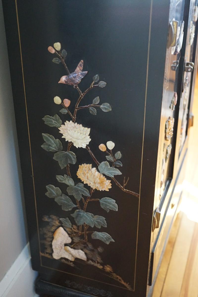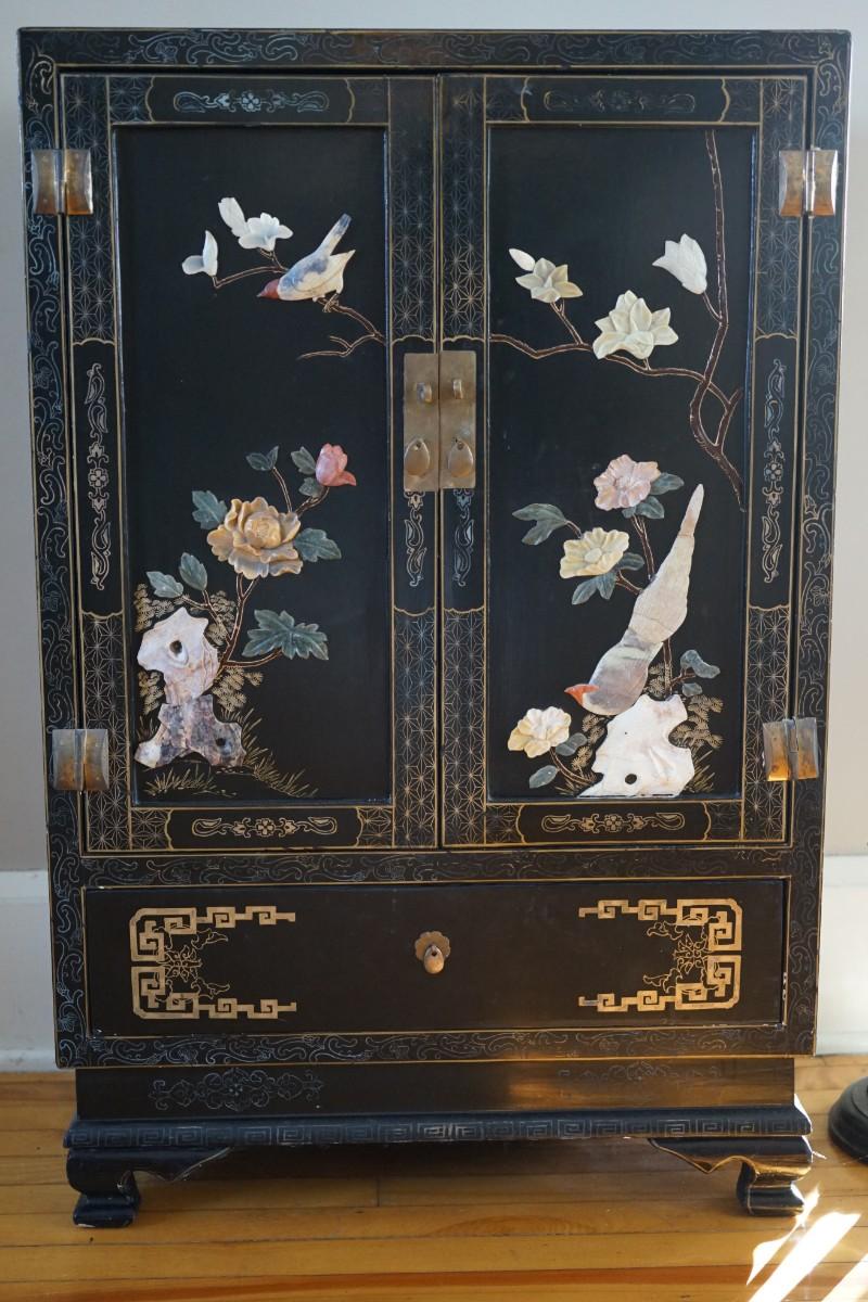 ASIAN STYLE TWO DOOR CABINET W / SEMI PRECIOUS STONE INLAY