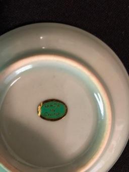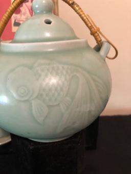 Asian Tea Set & Related Decor Great celadon colored glaze. Geisha print