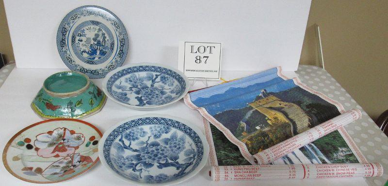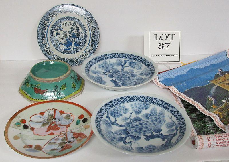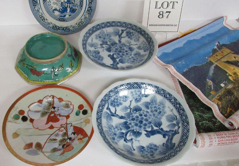 Asian Theme Dishes, Blue Willow Trivet, Blue & White Bowls Japan, Teal Bowl China, and Photo Calendars