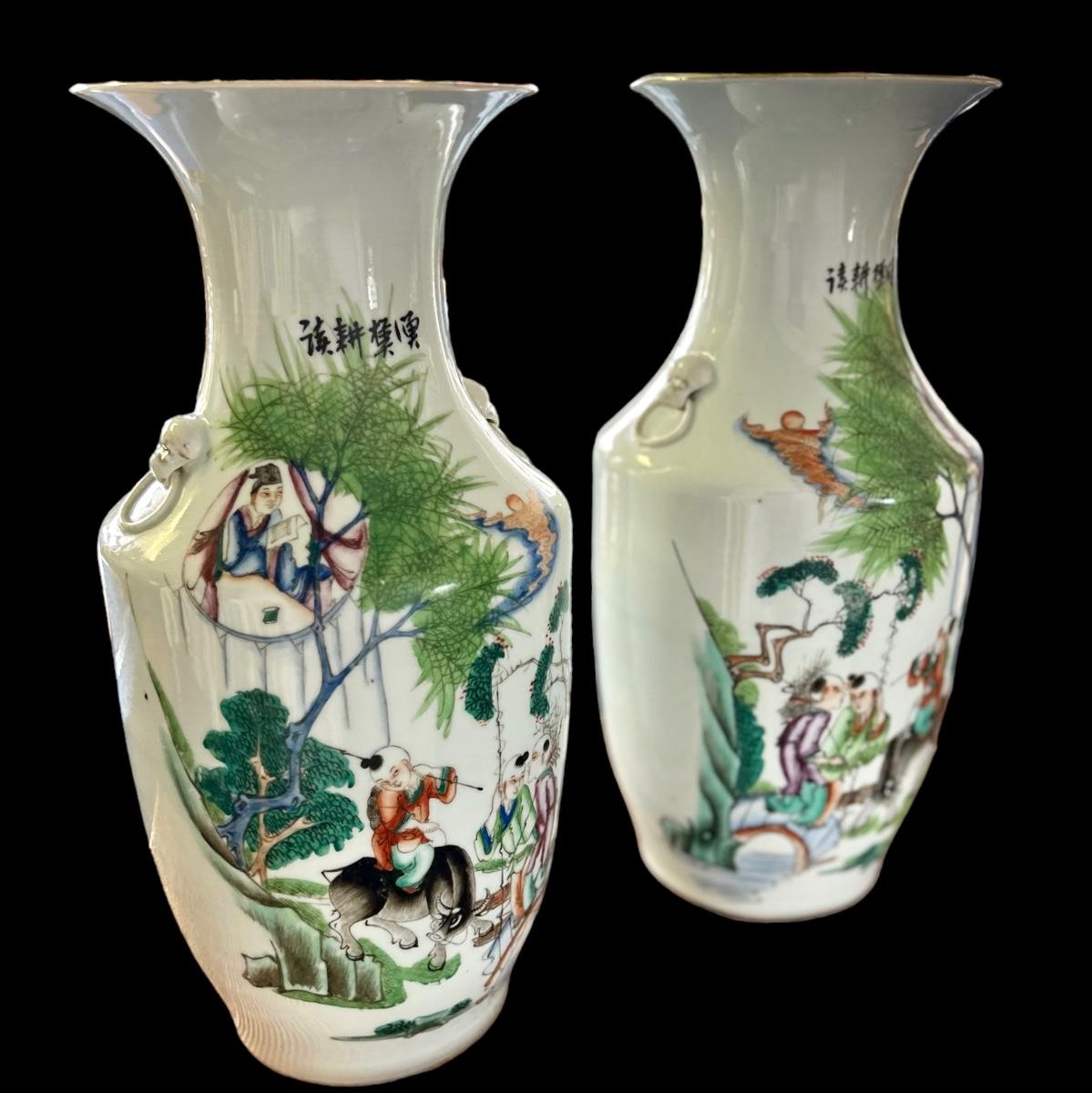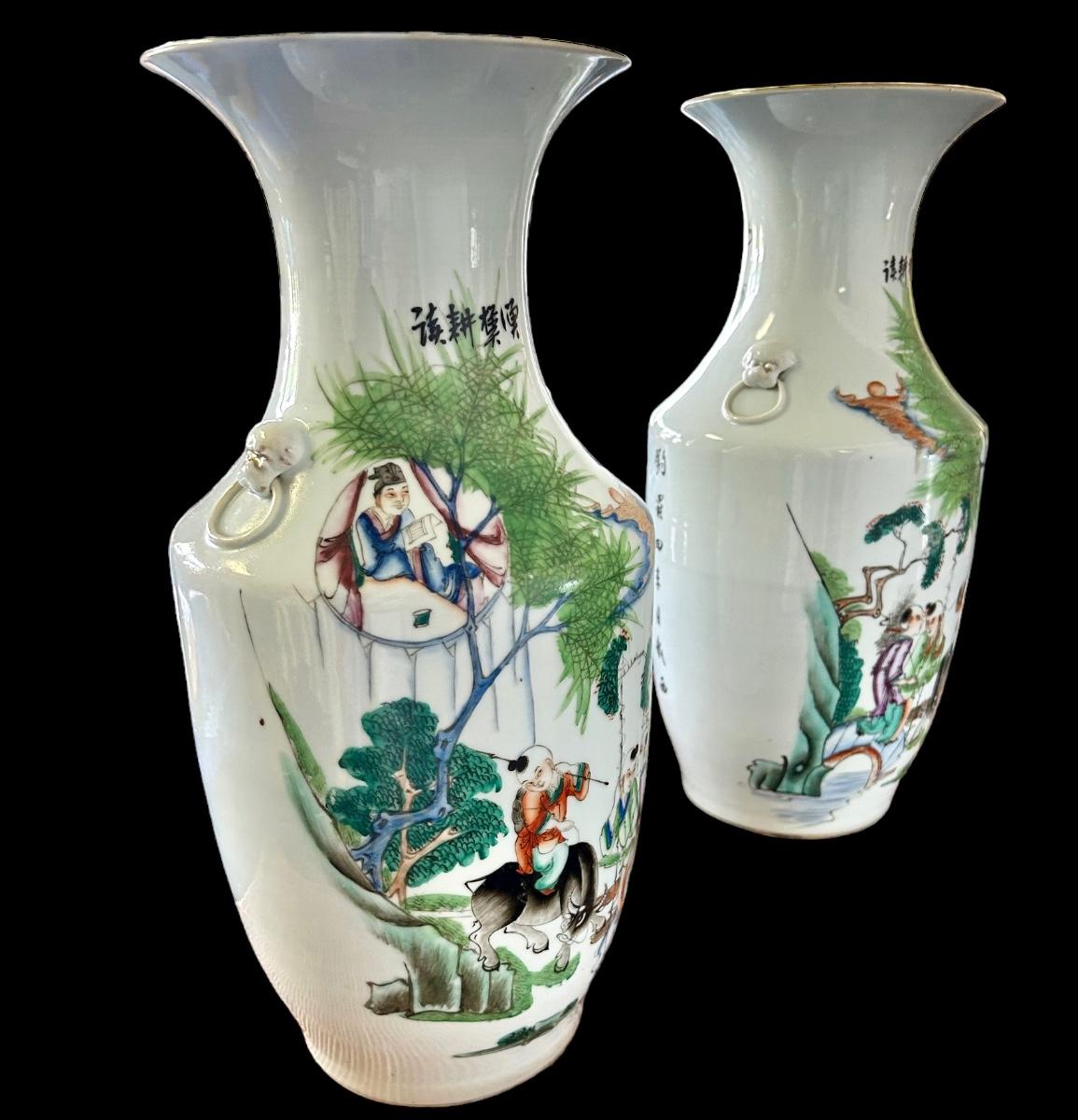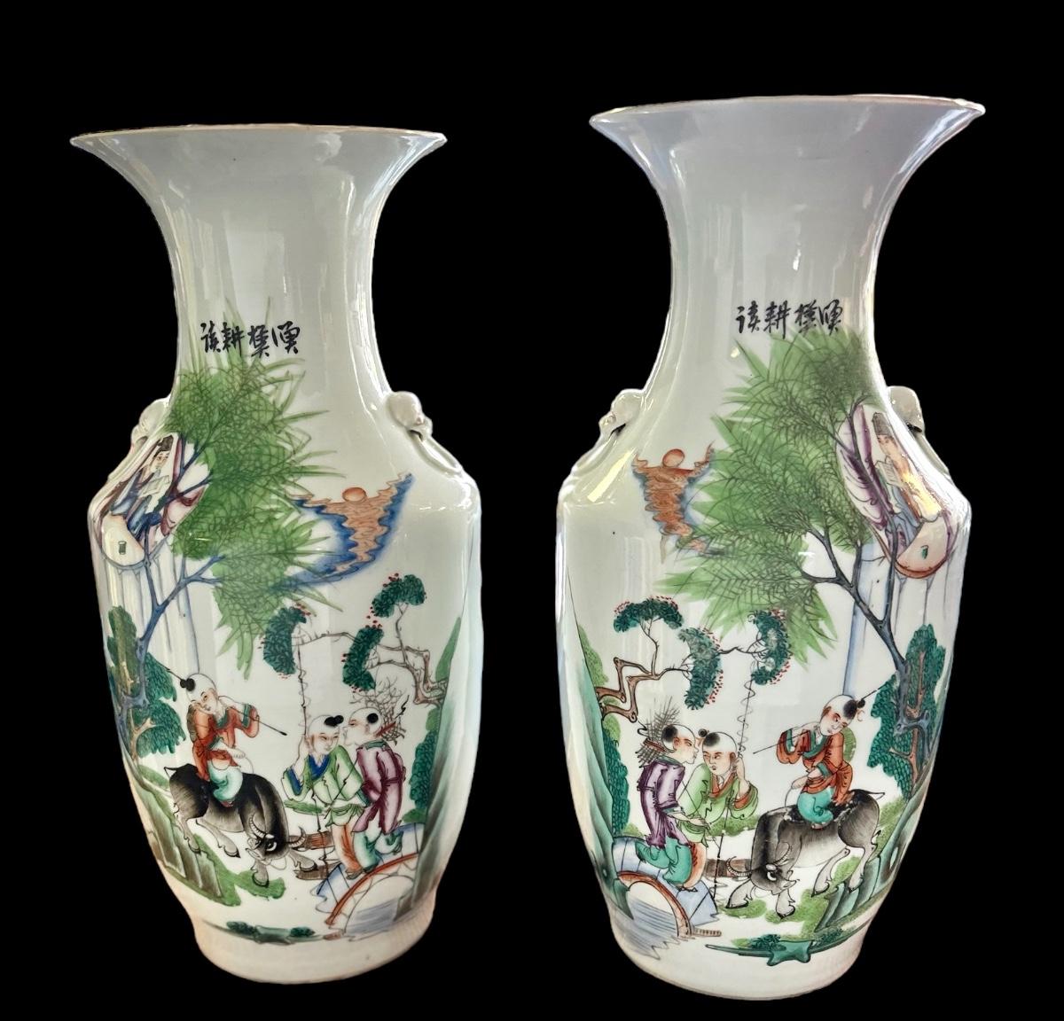 CONDITION - Very Good Condition, consistent with age. Hairline fracture on back of one vase, please refer to photo, zoom in.