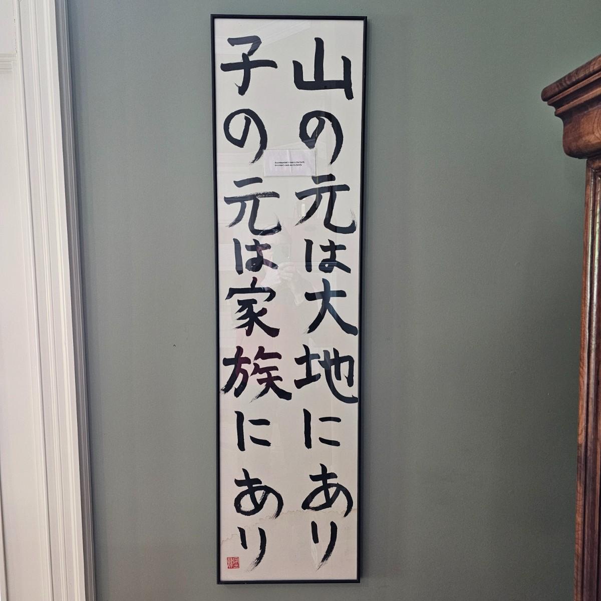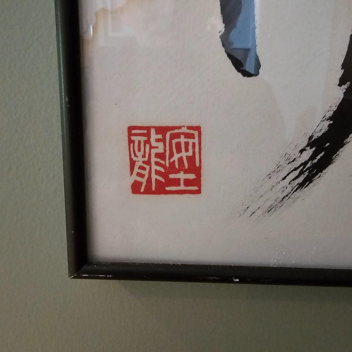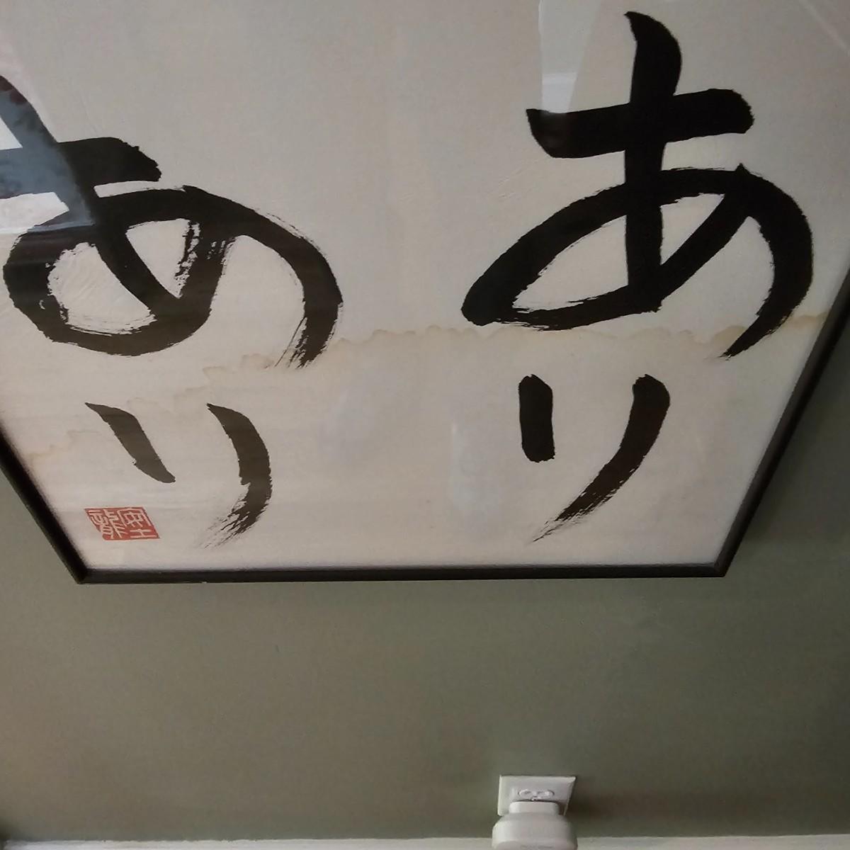 Long slender framed Asian art in metal frame. Art appears to be brush painting on rice paper, has translation in English taped to front. Item bears chop mark at bottom, has had some water damage at bottom as well. Measures 14" x 53"H. Has two wire hanging points on back, see photos for details. Shipping available. Shipping can be costly. We suggest contacting our preferred local shipping provider, Postage Express, with dimensions and getting an estimate before bidding: (828) 670-5501 or shipping@postageexpressnc.com