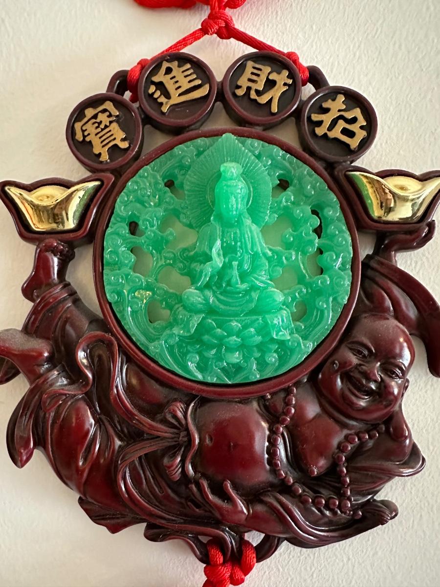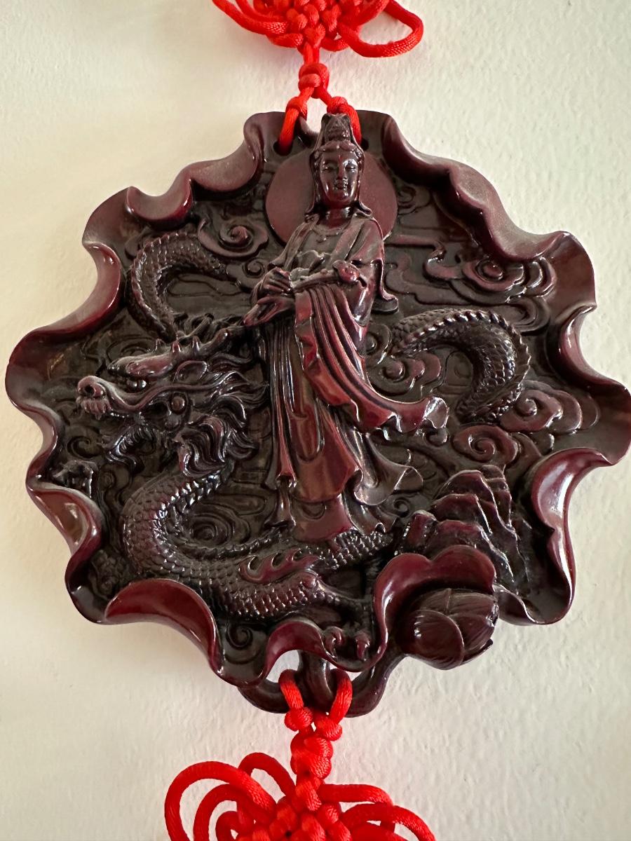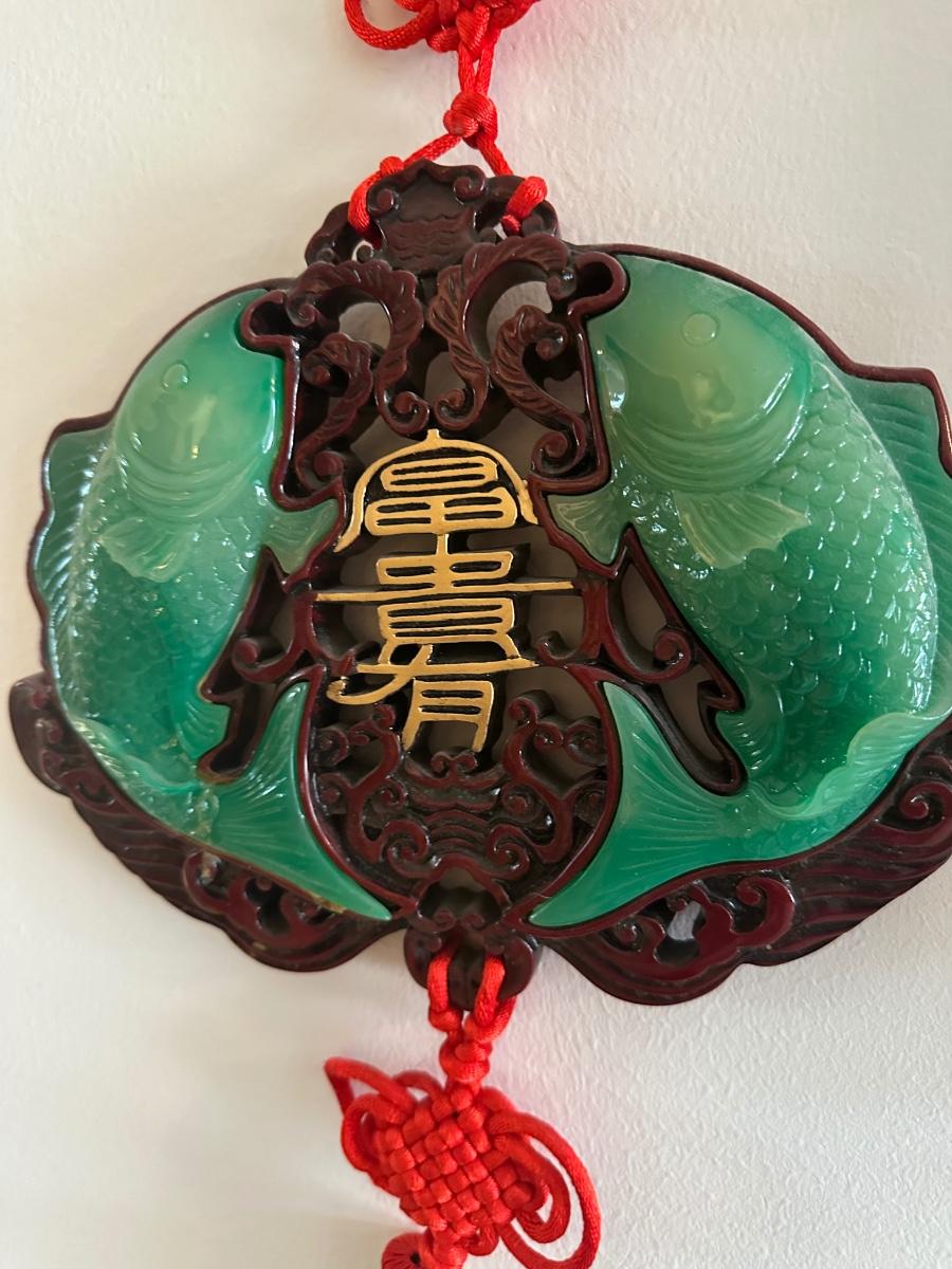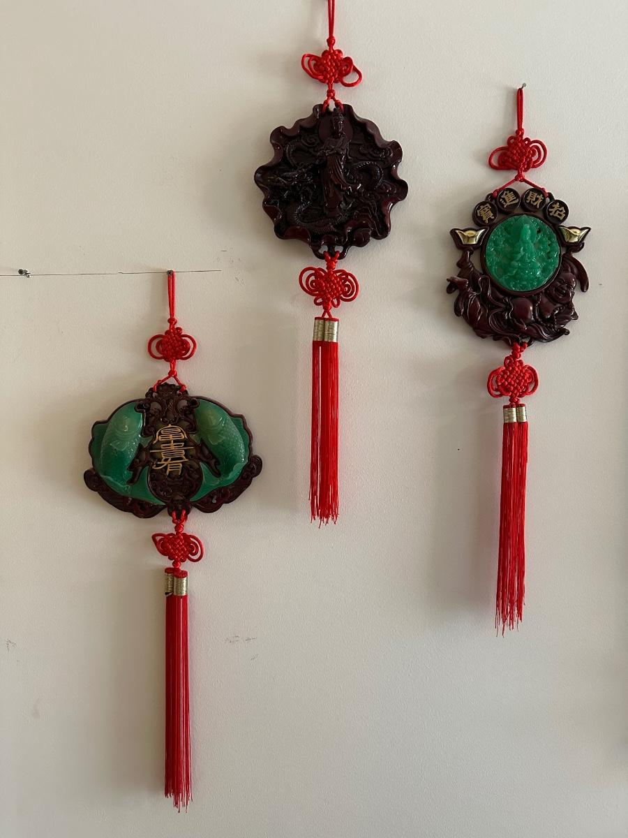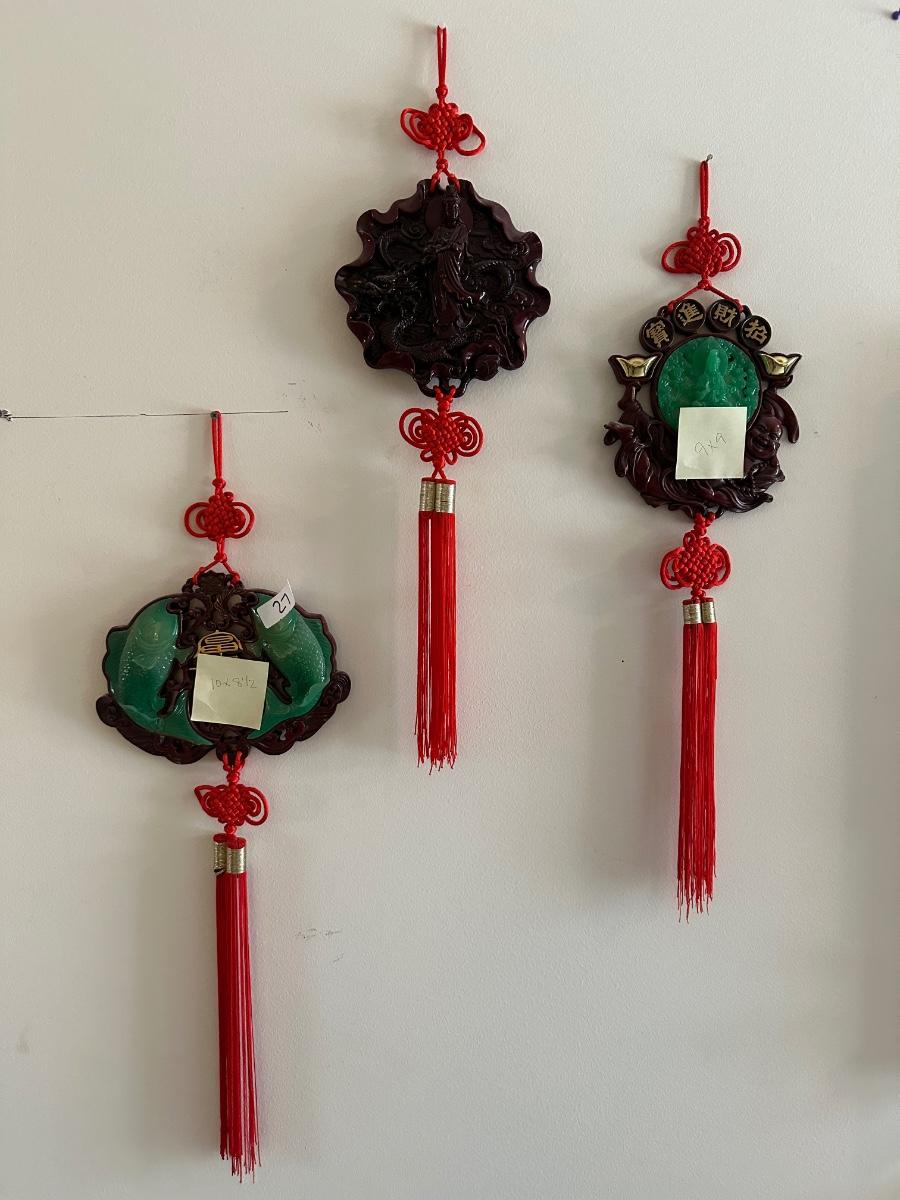 RESIGN AND PLASTIC ASIAN WALL HANGING SET WITH RED TASSELS AS PICTURED