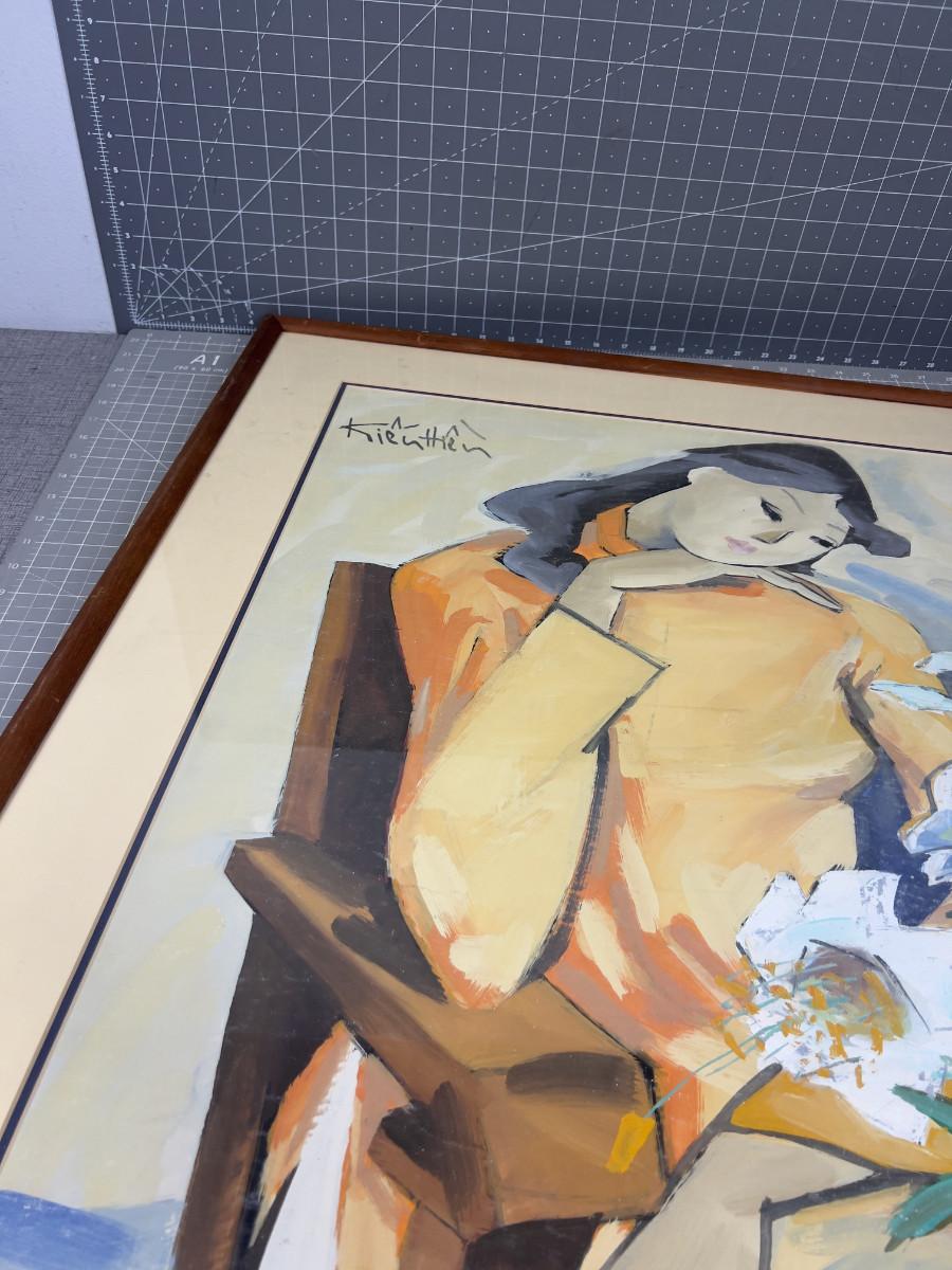 "Asian Woman w/Lillies Watercolor, Framed Matted