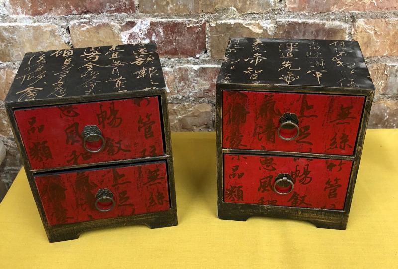 Here are a pair of small 6 x 7 x 5" Asian curio cabinets...Wood construction...Good condition...