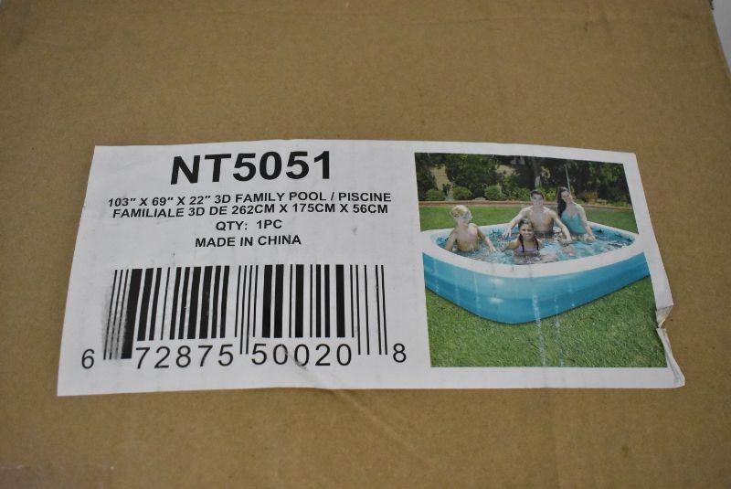 AS-IS, Untested - Blue Wave 3D Inflatable Rectangular Family Pool - 103" x 69"