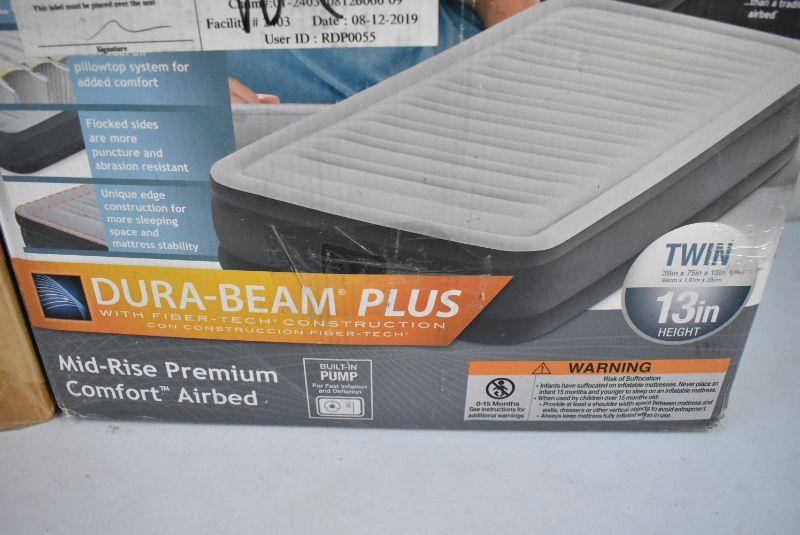 AS-IS, Untested - Merax Twin Size Airbed Mattress with Pillow & Built-in Pump. Intex Twin 13" DuraBeam Comfort Plush Mid-Rise Airbed Mattress