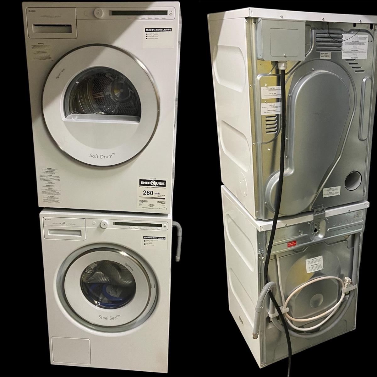 This lot is an Asko T208VW front loading stackable washer and dryer. Appears to be unused. This item measures 24” x 21” x 66”H. It does seem that they are not attached and could be side by side. See pictures for model number. Local pickup only. Winning bidder must bring assistance to help move and load this item due to its weight and/or size.
