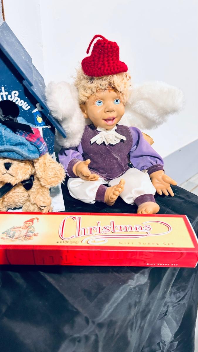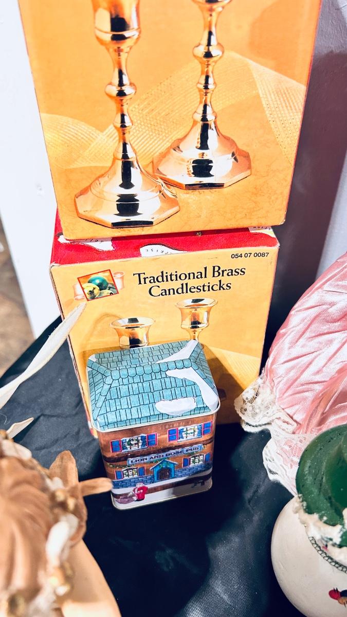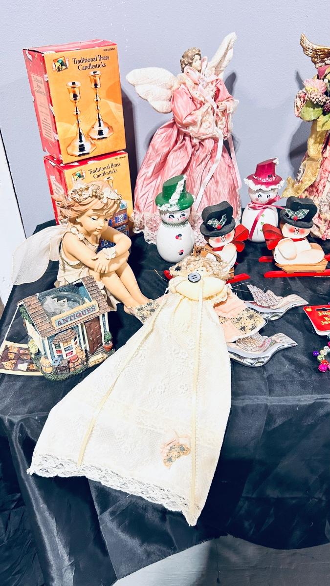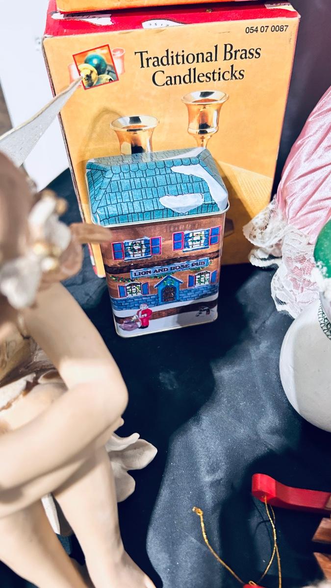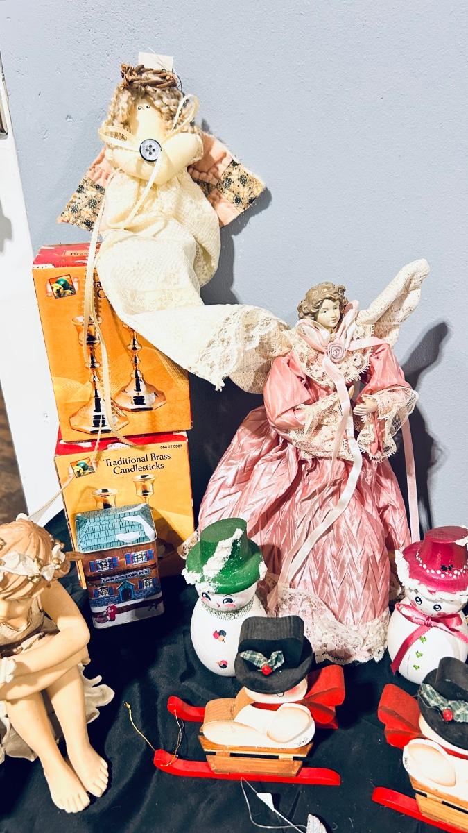 CHRISTMAS ANGELS, TWO SETS OF BRASS CANDLE HOLDERS AND MORE