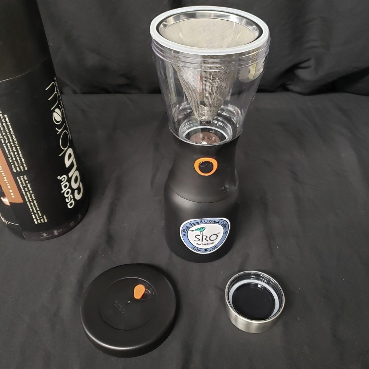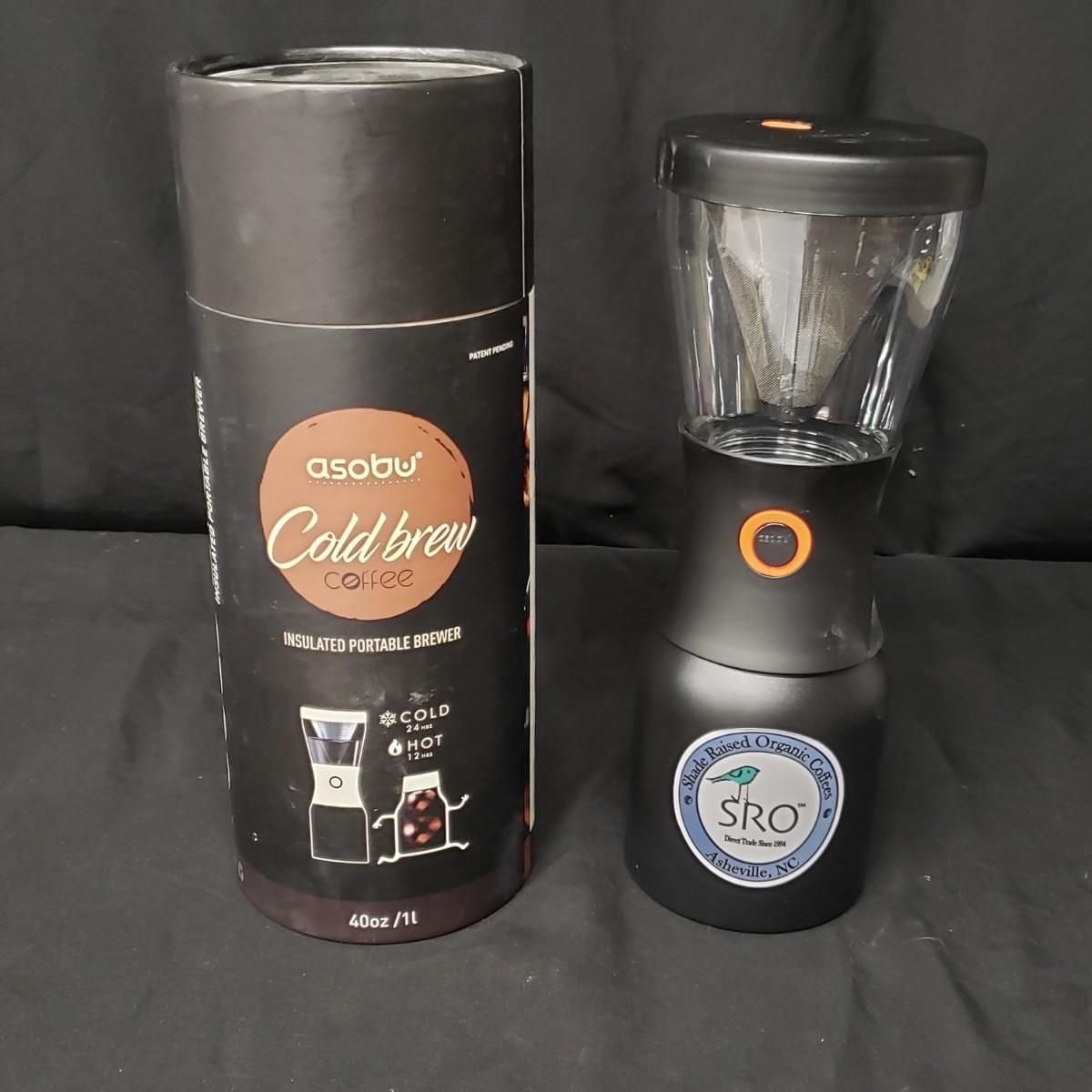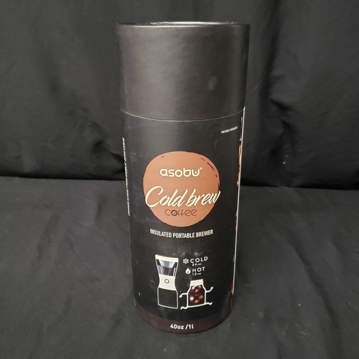 Asobu Cold Brew Coffee Portable Brewer all in one set. The brewer measures 5"x13", so it is small enough to travel with! Comes in handy hard cardboard case. It appears to never have been used. Shipping available.