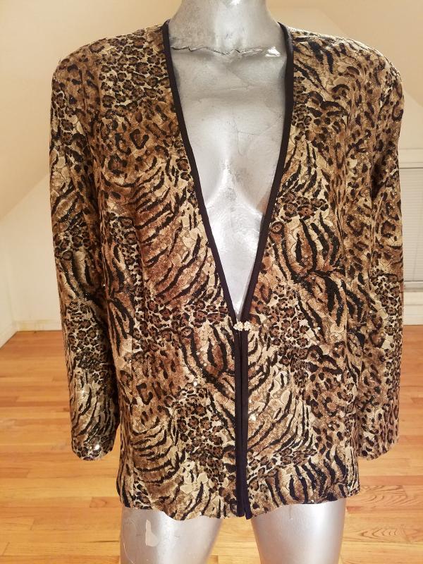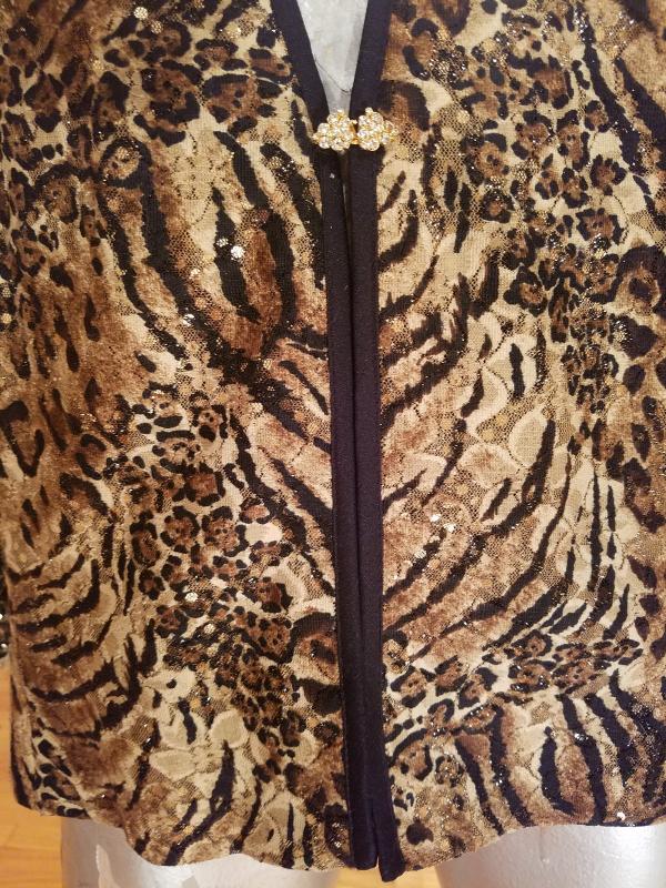 Absolutely stunning animal print large tunic jacket with rhinestone button closure lined