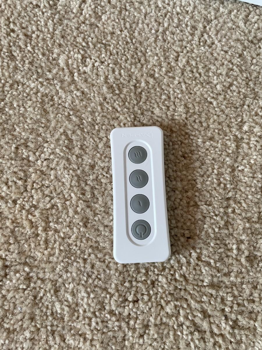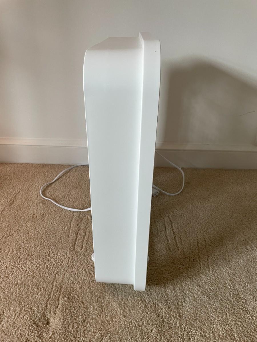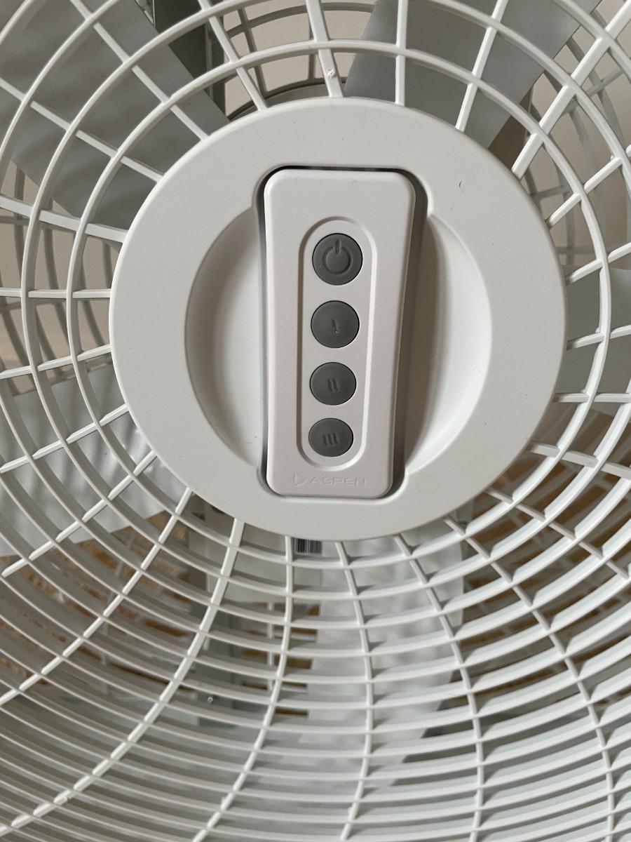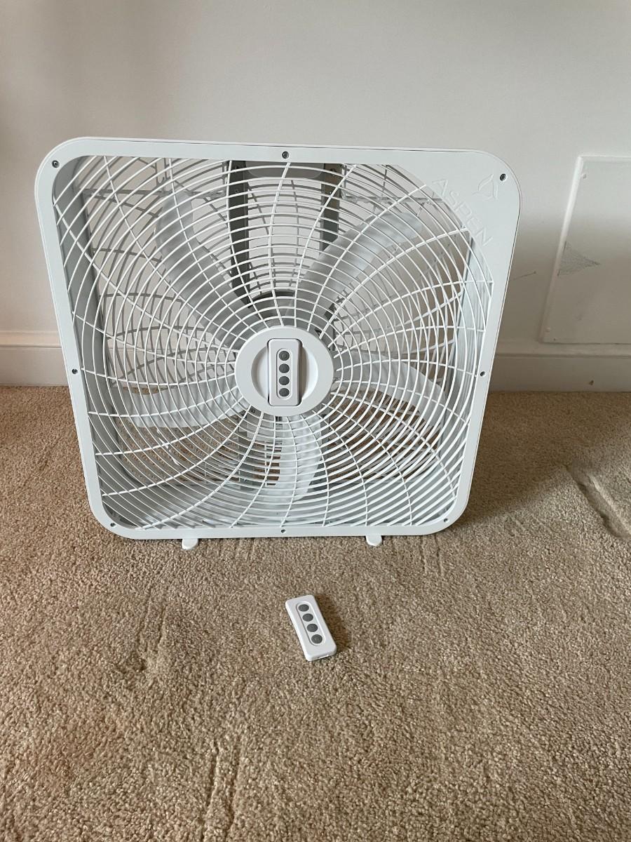 4 1/2D x 21W x 21H. Corded Electric. Includes remote. White. Light weight.