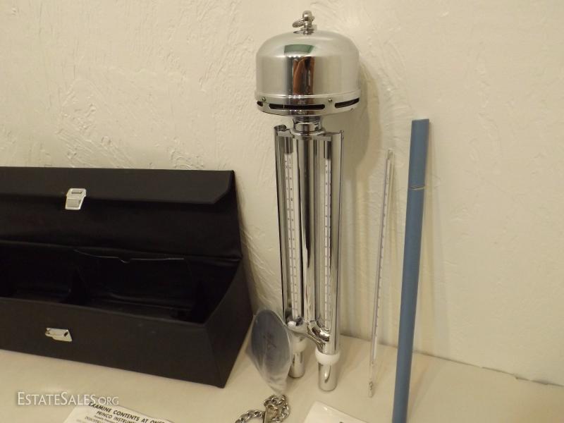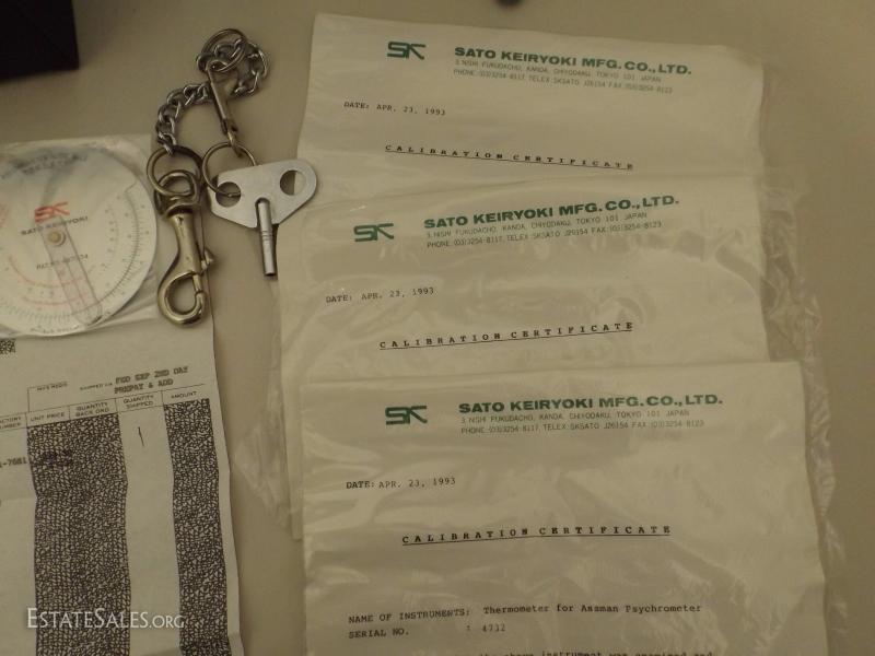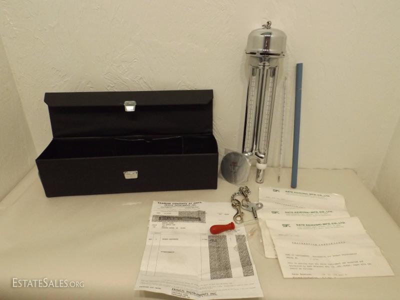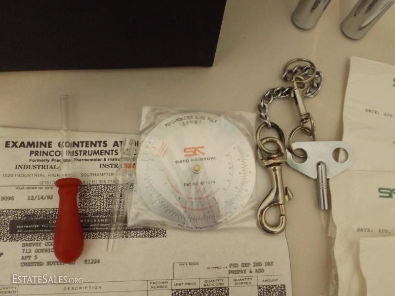 Assman Psychrometer (weather instrument) includes Assman Psychrometer, thermomter, guages as pictured paper work and documentation of calibration, also includes case.