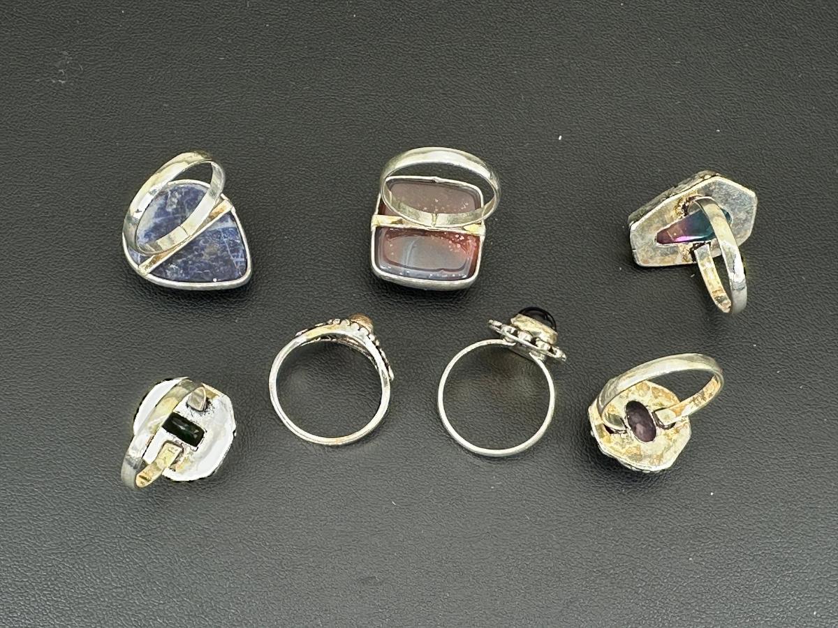 1. Assorted Silver Plated Handmade Gemstone Rings for Women ; Sizes 4 to 10-Alloy Metal Silver Plated
