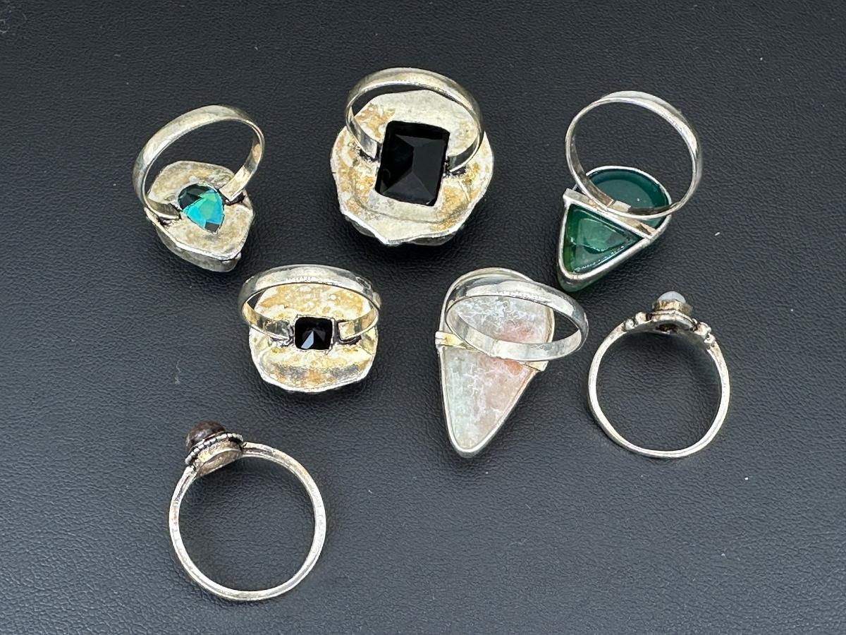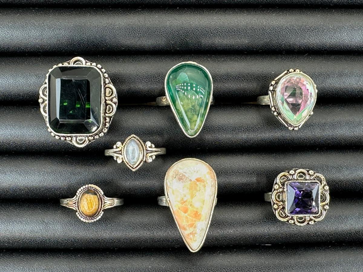 1. Assorted Silver Plated Handmade Gemstone Rings for Women ; Sizes 4 to 10-Alloy Metal Silver Plated
