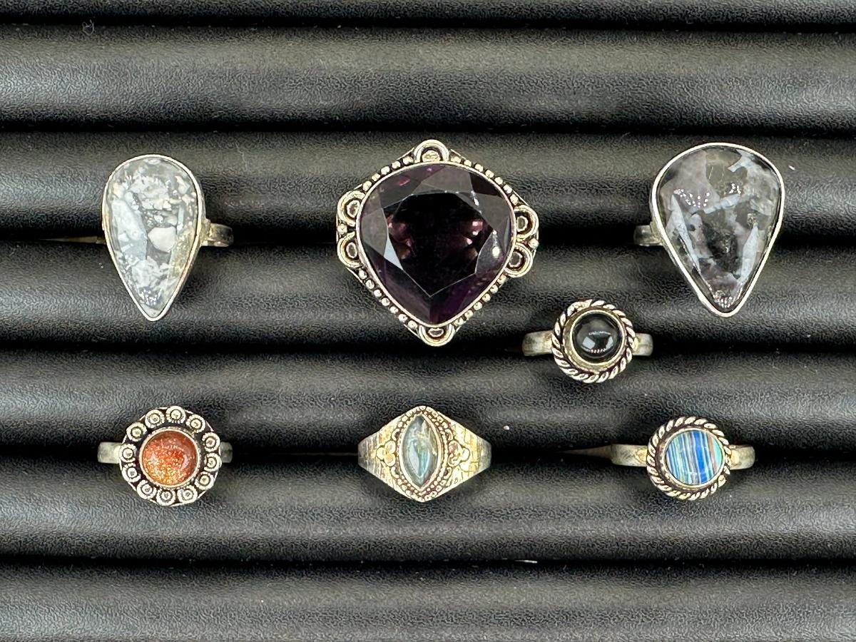 Assorted 925 Sterling Silver Plated Handmade Gemstone Rings For Women  Sizes 4 To 10