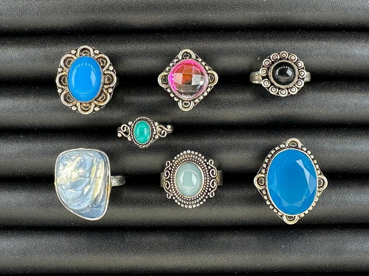 1. Assorted 925 Sterling Silver Plated Handmade Gemstone Rings for Women – Sizes 4 to 10_x000D_