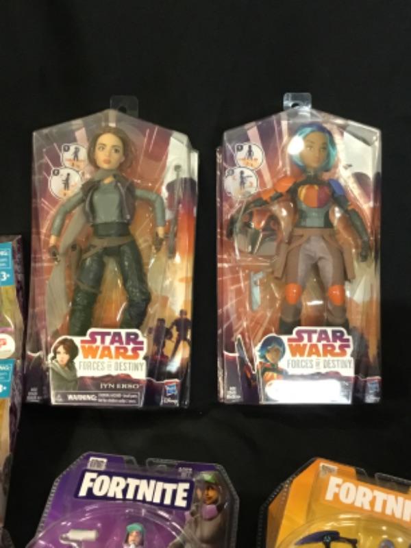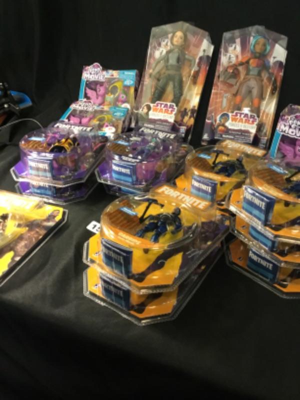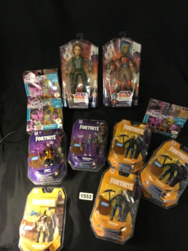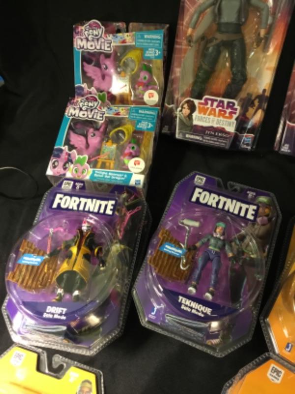 Assorted action figurines; Fortnite, Star Wars, my little pony lot 1553