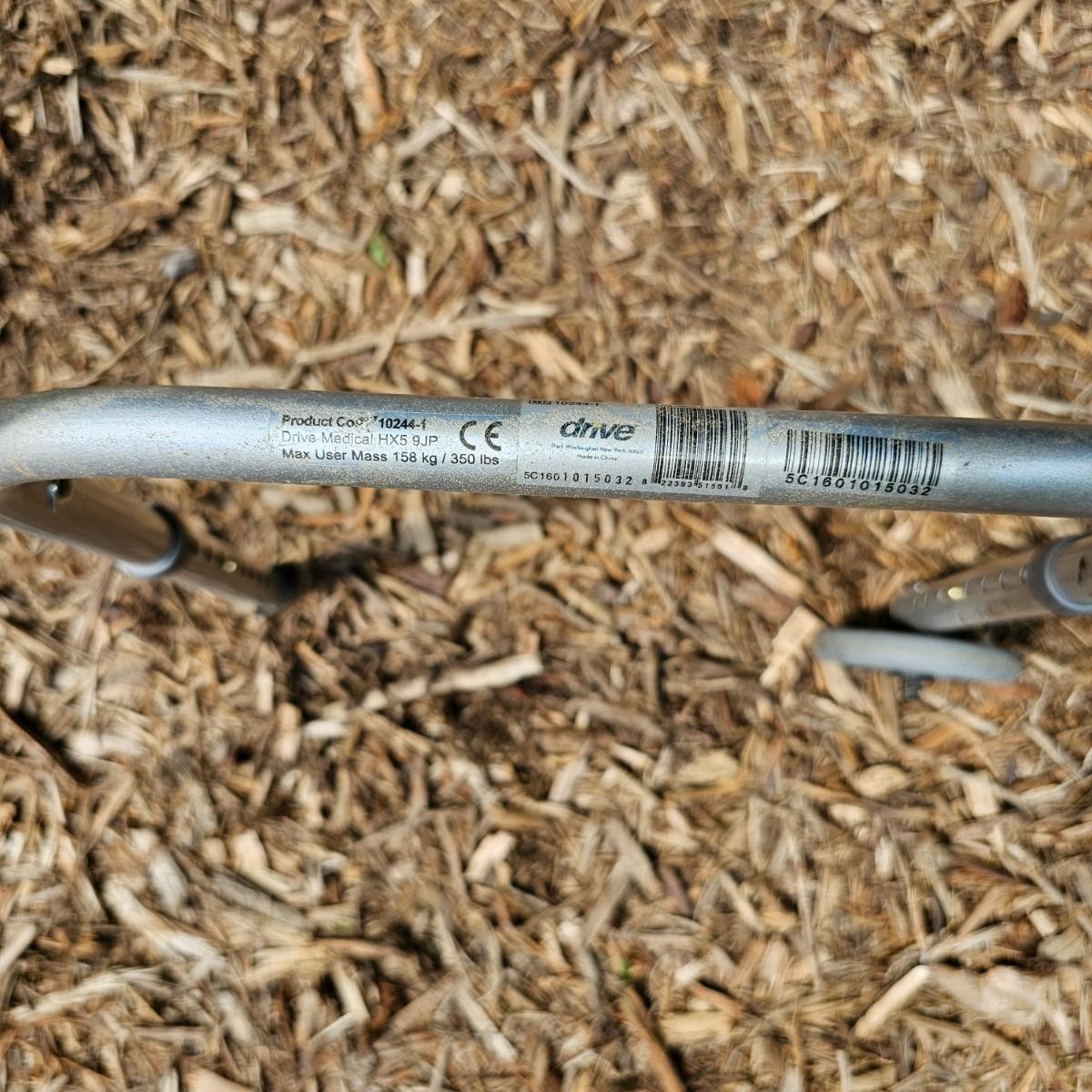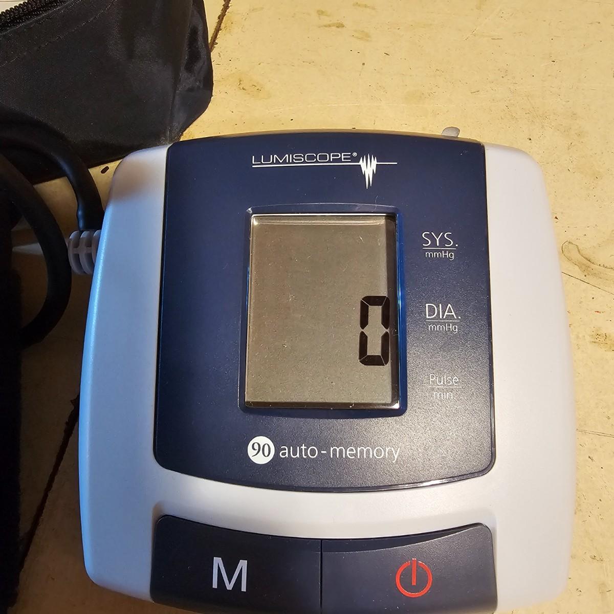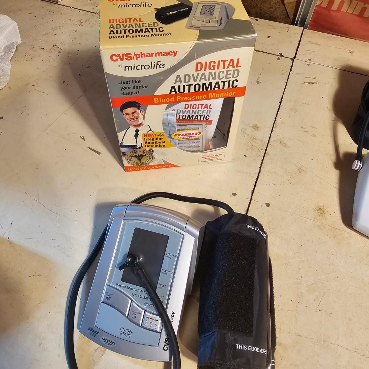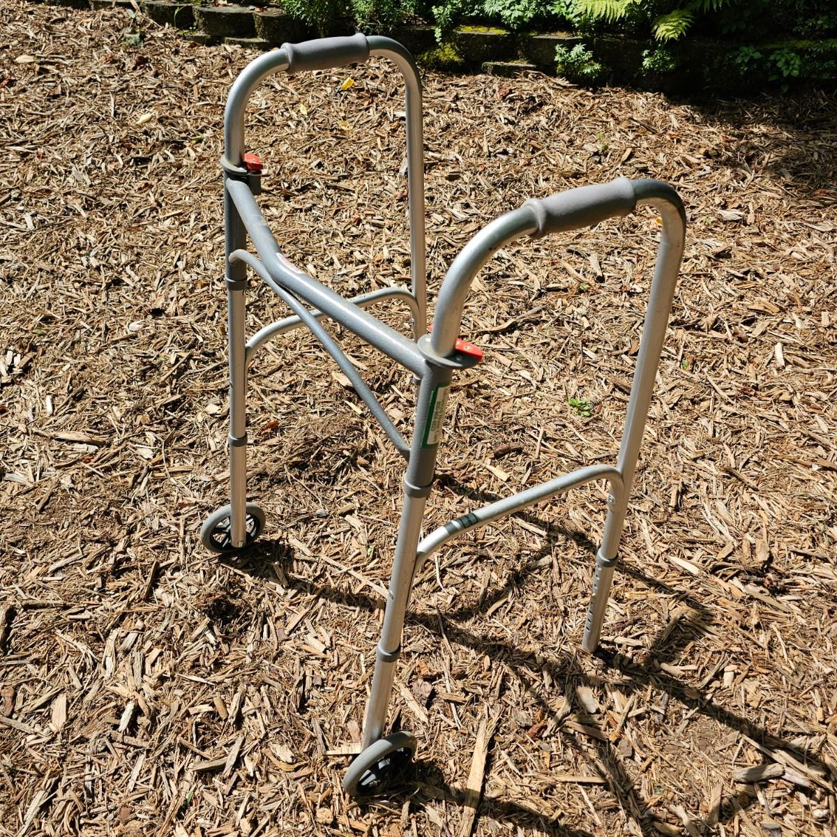 Numerous items of healthcare equipment. Three folding walkers, Invacare, Drive and one older. Items measure approximately 20" x 16" x 33"H, two have rolling wheels. The Blue Drive unit is a walker/seat combo, has four rolling wheels, brakes, a carry bag and a back support strap. Measures 25" x 27" x 35"H, folds for storage. Five different styles of blood pressure cuffs, including a manual model. Other items have auto functions, some are battery and others are electric. Plug in units powered on when plugged in, battery units not tested. Also includes a pair of aluminum crutches, a foot brace, a leg brace and other items. One corner shower chair, 22" x 16" x 17"H. All items have some wear and use. See photos for details. Local pickup only.