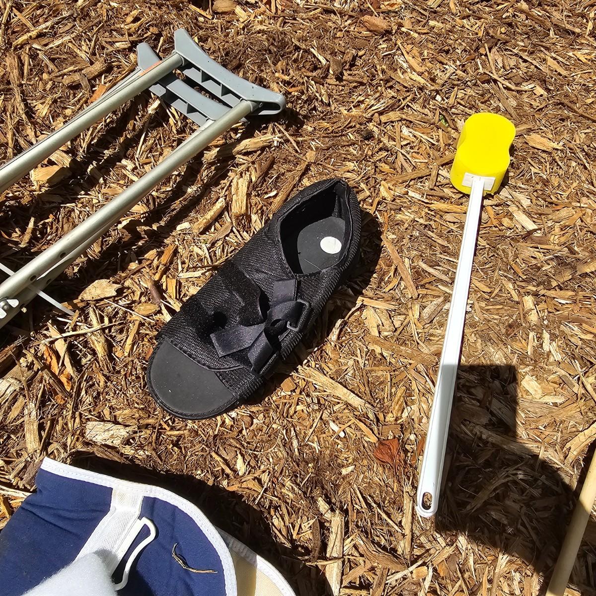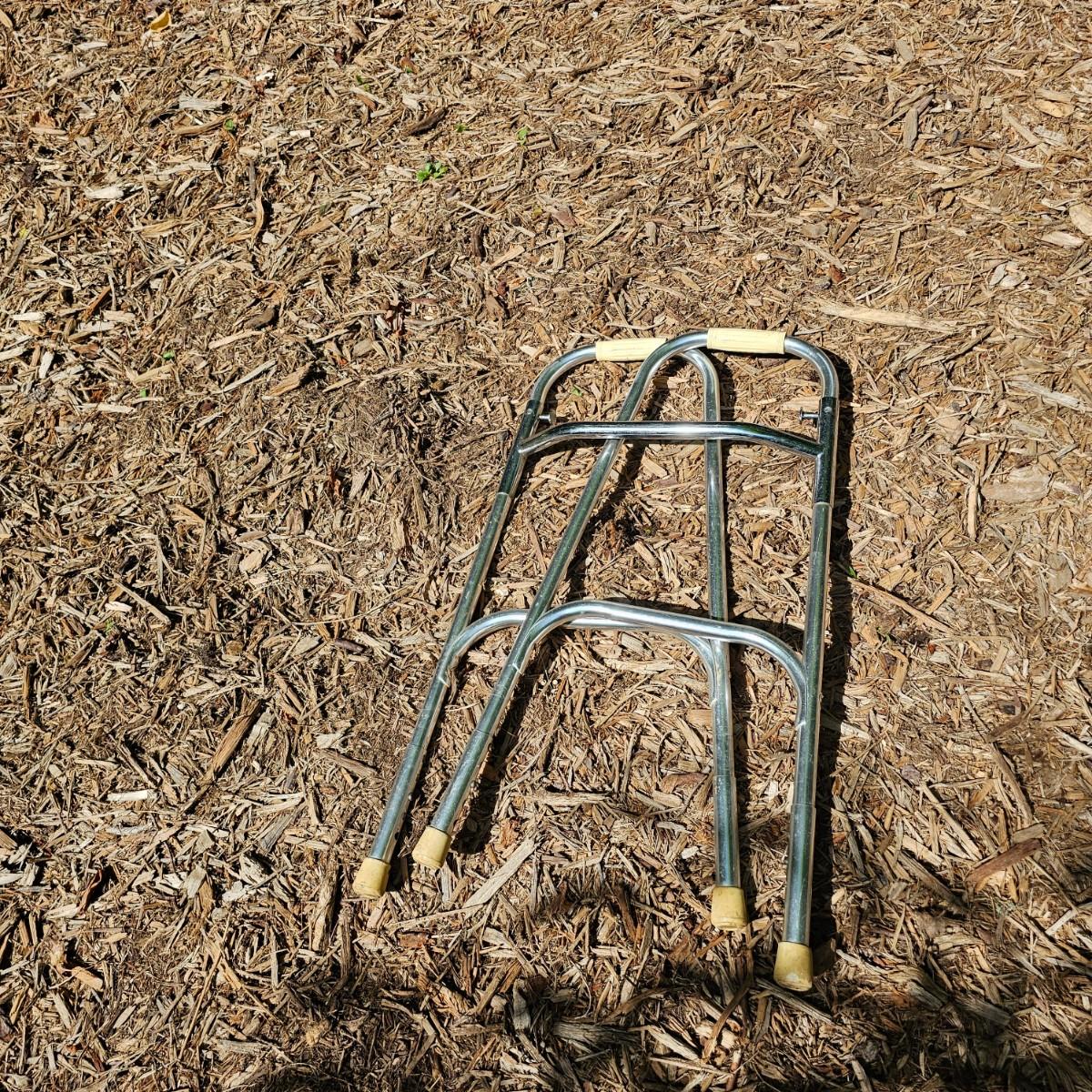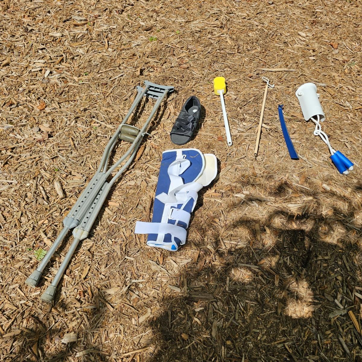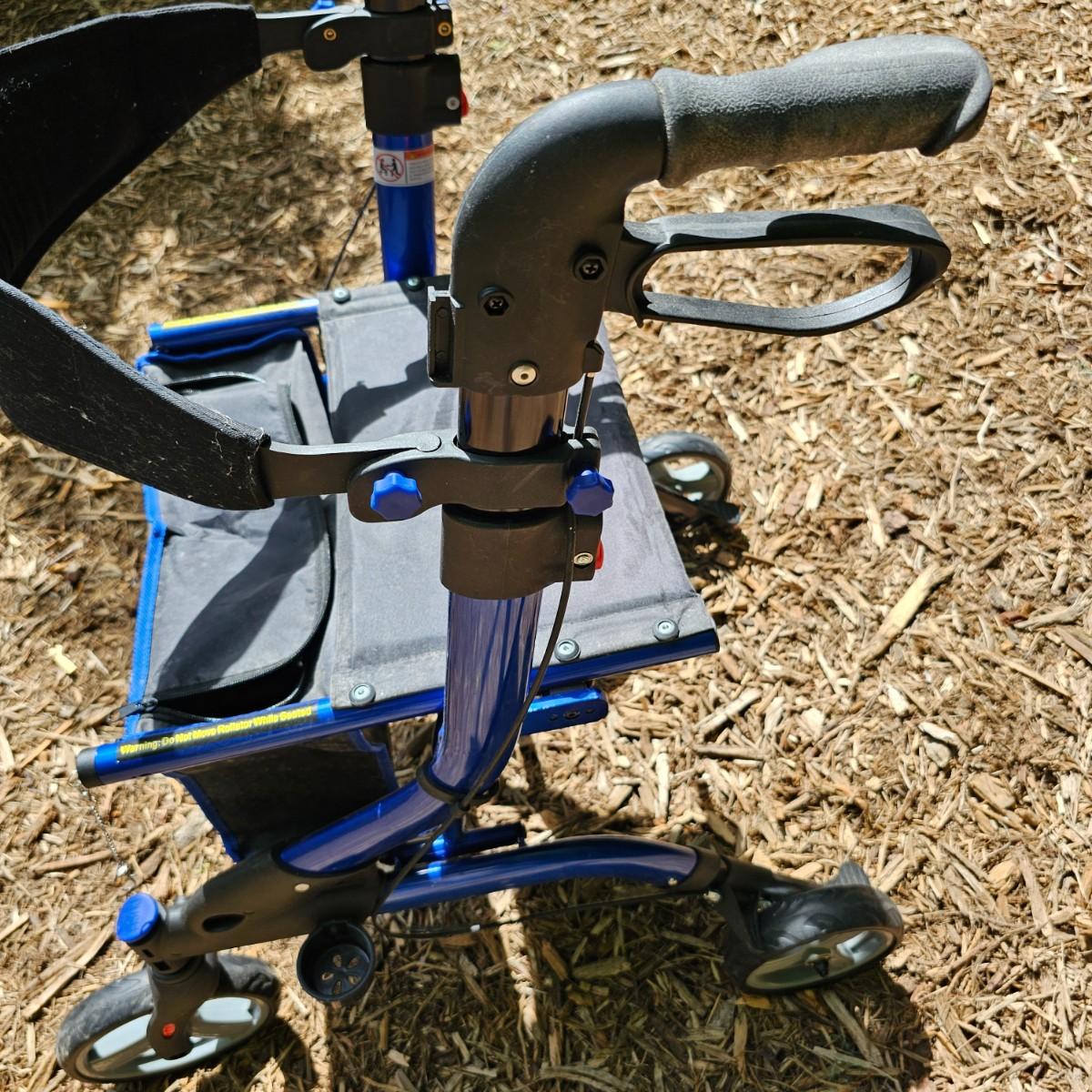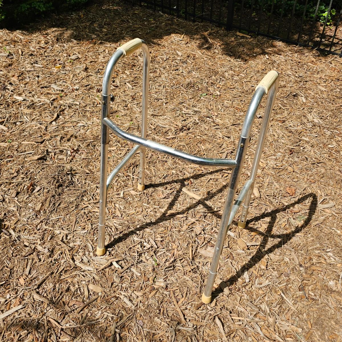 Numerous items of healthcare equipment. Three folding walkers, Invacare, Drive and one older. Items measure approximately 20" x 16" x 33"H, two have rolling wheels. The Blue Drive unit is a walker/seat combo, has four rolling wheels, brakes, a carry bag and a back support strap. Measures 25" x 27" x 35"H, folds for storage. Five different styles of blood pressure cuffs, including a manual model. Other items have auto functions, some are battery and others are electric. Plug in units powered on when plugged in, battery units not tested. Also includes a pair of aluminum crutches, a foot brace, a leg brace and other items. One corner shower chair, 22" x 16" x 17"H. All items have some wear and use. See photos for details. Local pickup only.