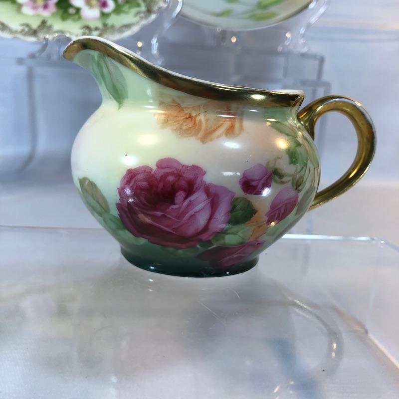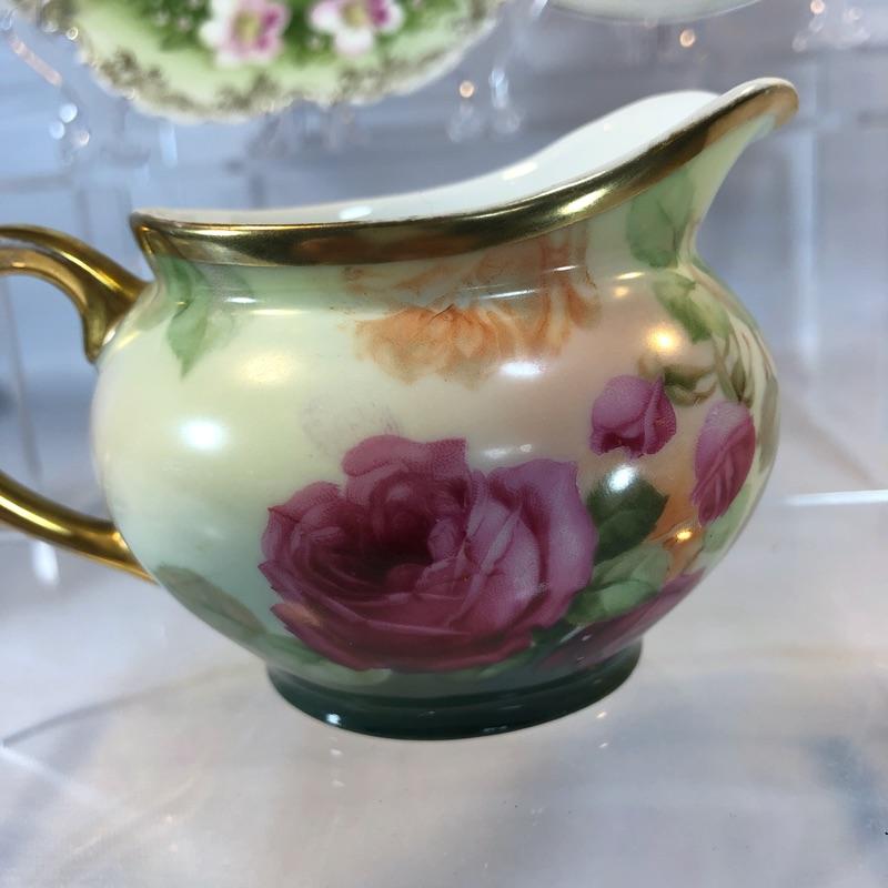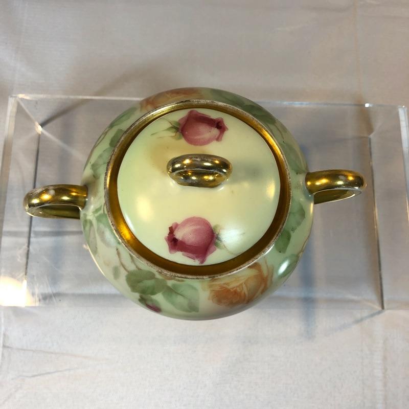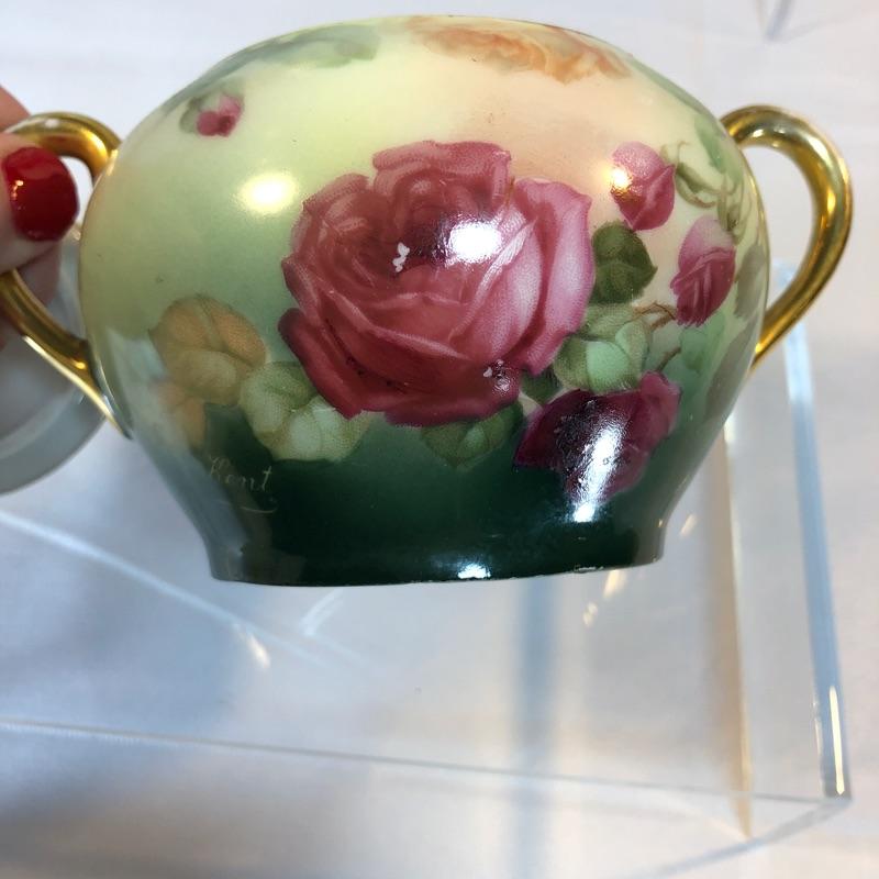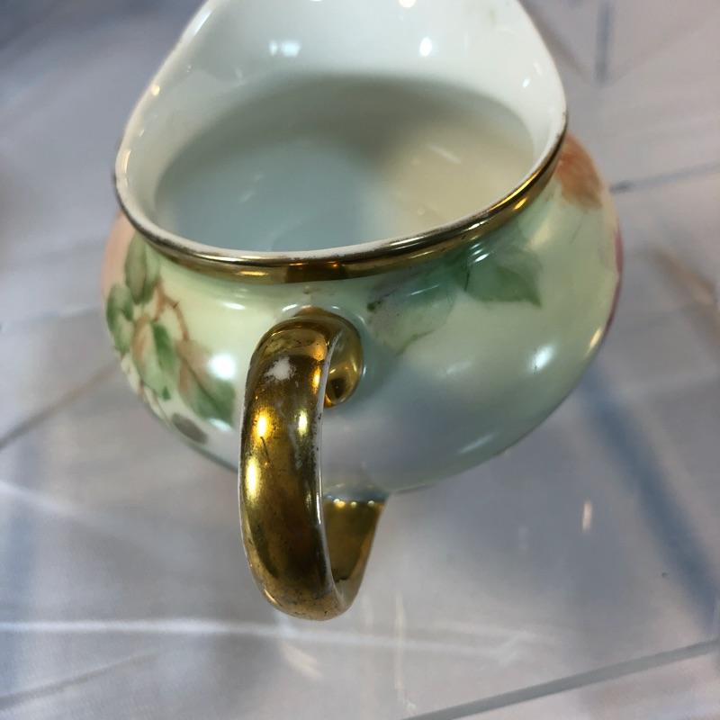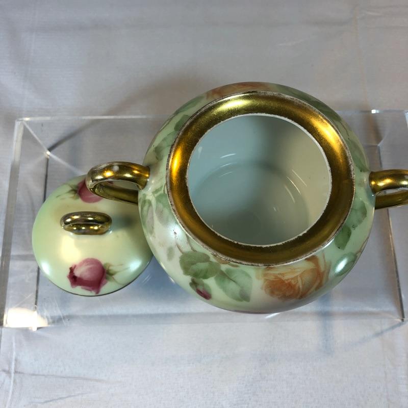 Thomas: sugar and creamer, gold trim, artist signed "Kent"