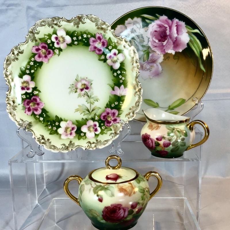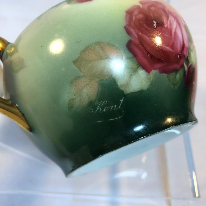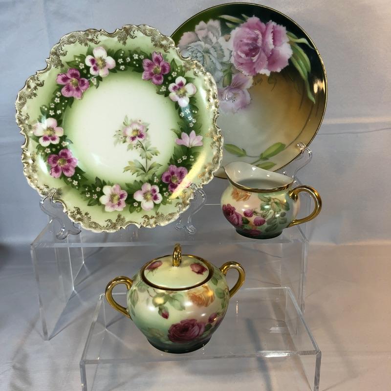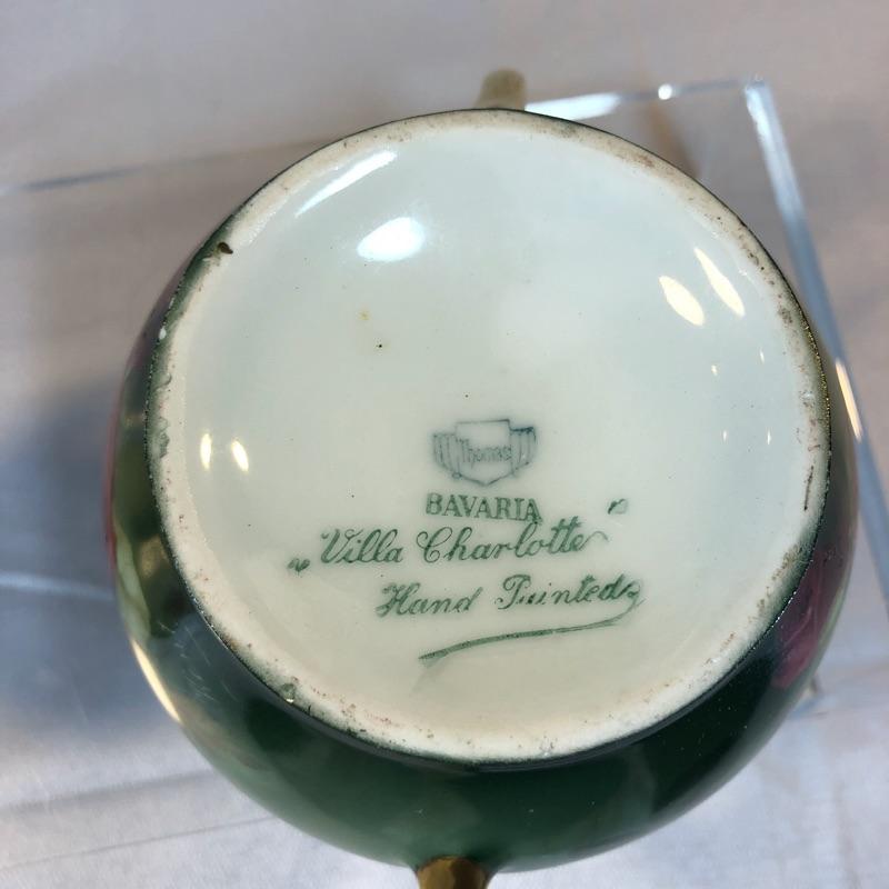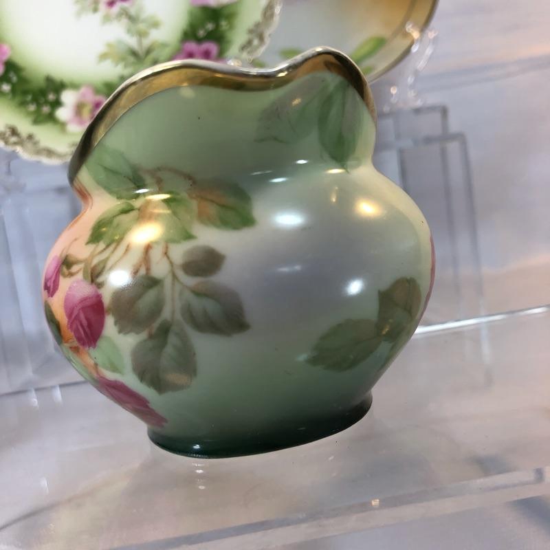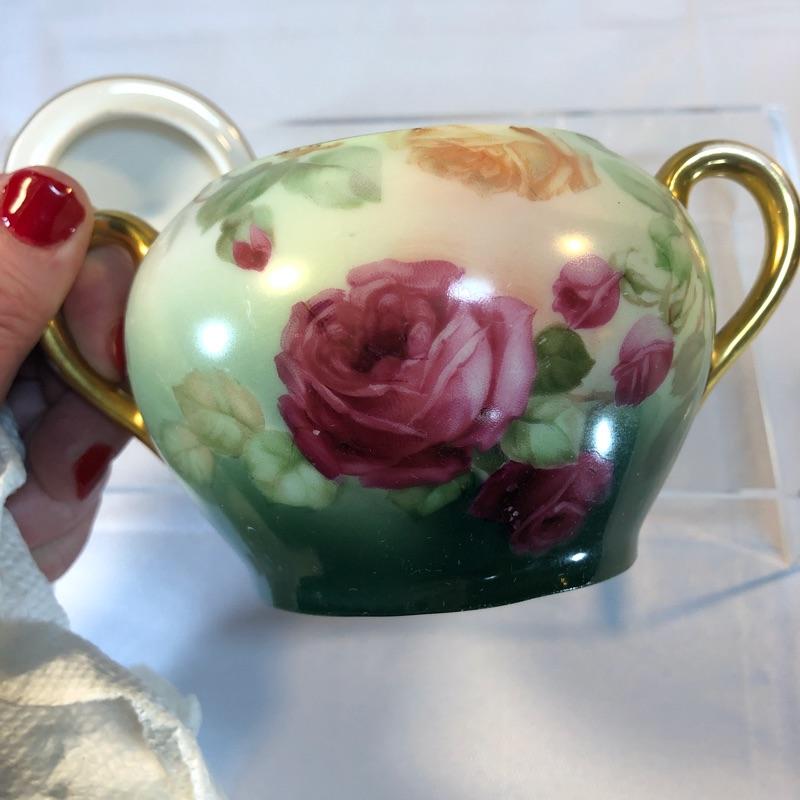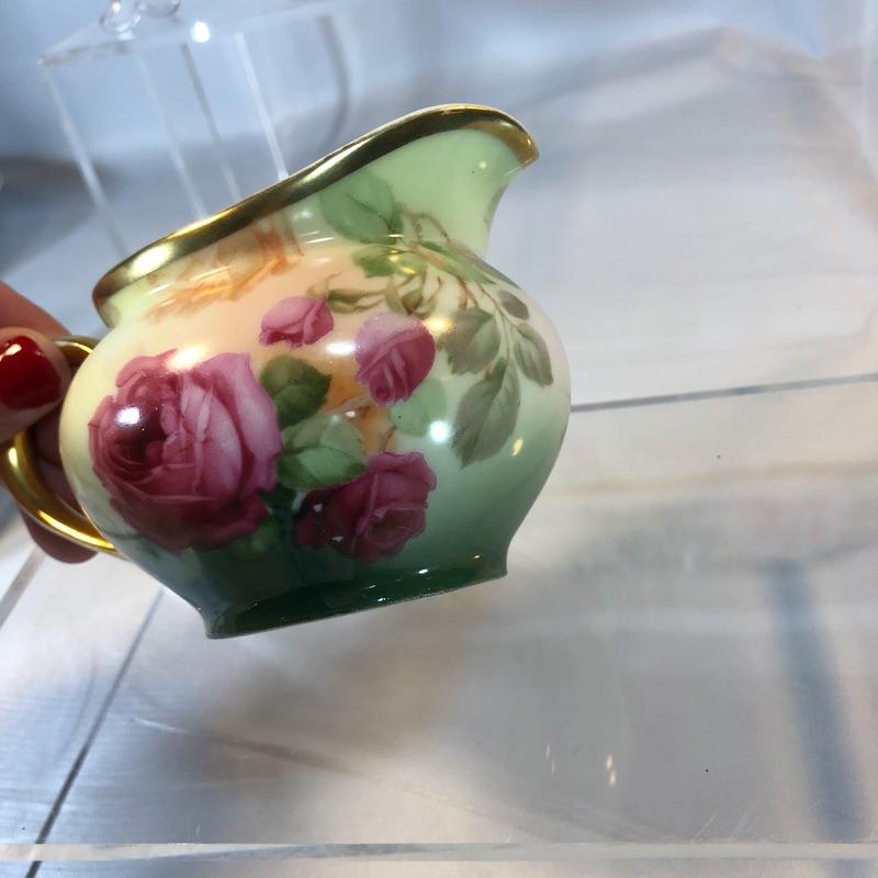 Thomas: sugar and creamer, gold trim, artist signed "Kent"