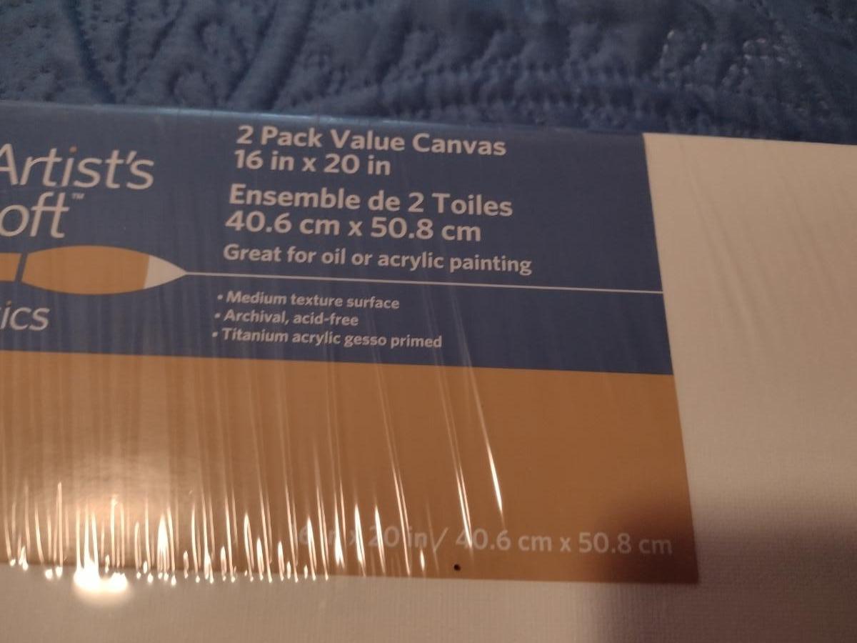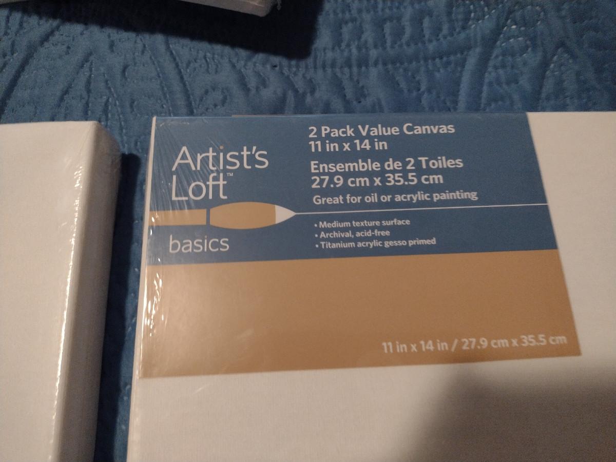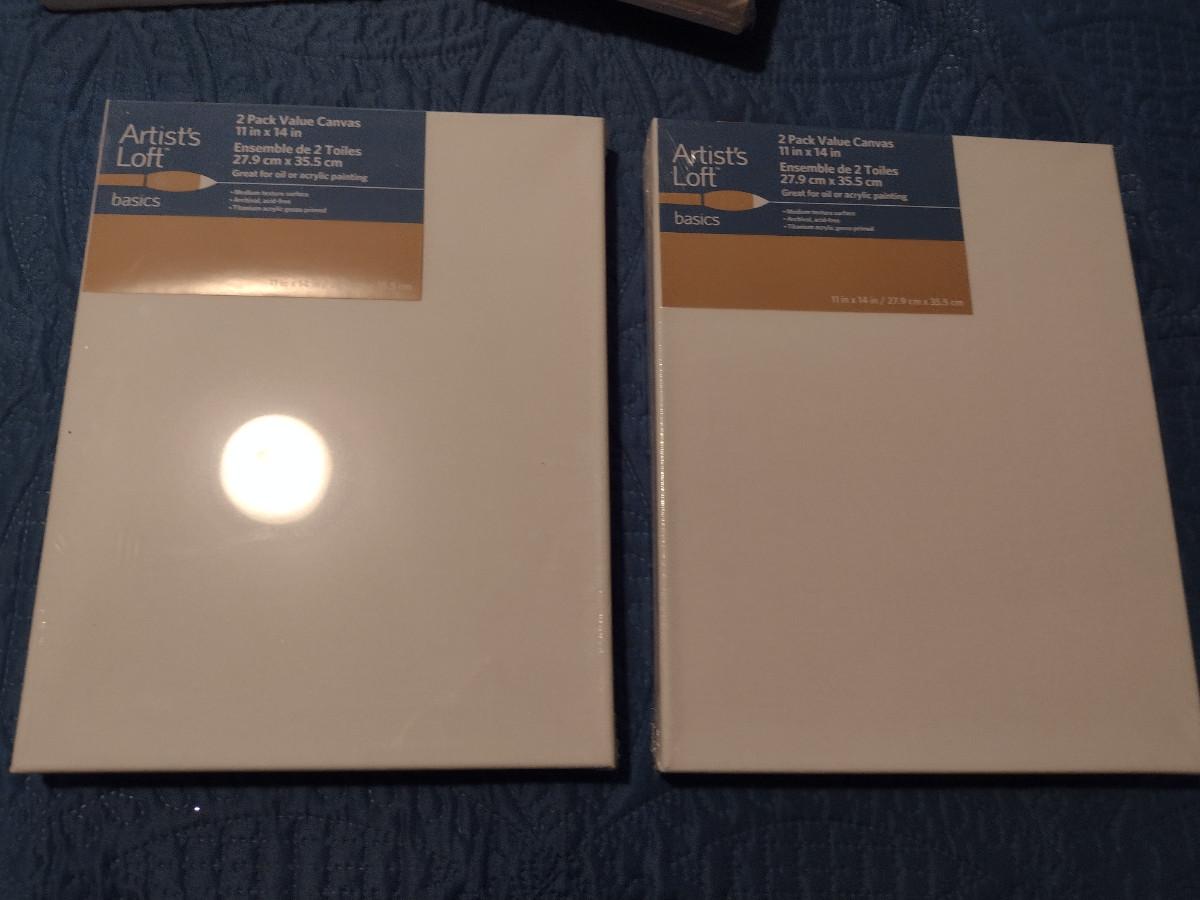 Assorted Artist's Canvas (E). 5 Packs total. 2 pieces in each. 2 packs 11" x 14", 2 packs 8" x 10", 1 pack 16" x 20".