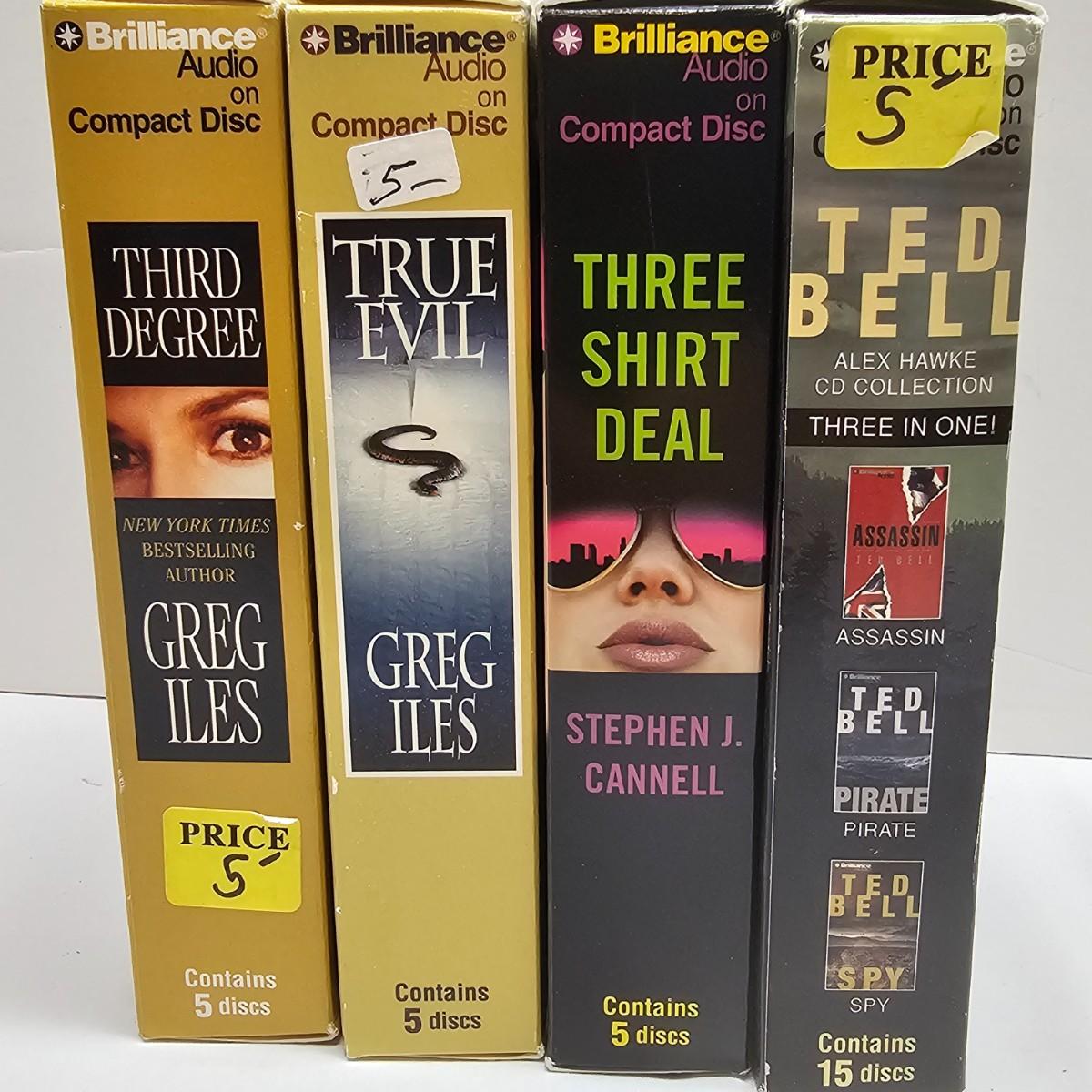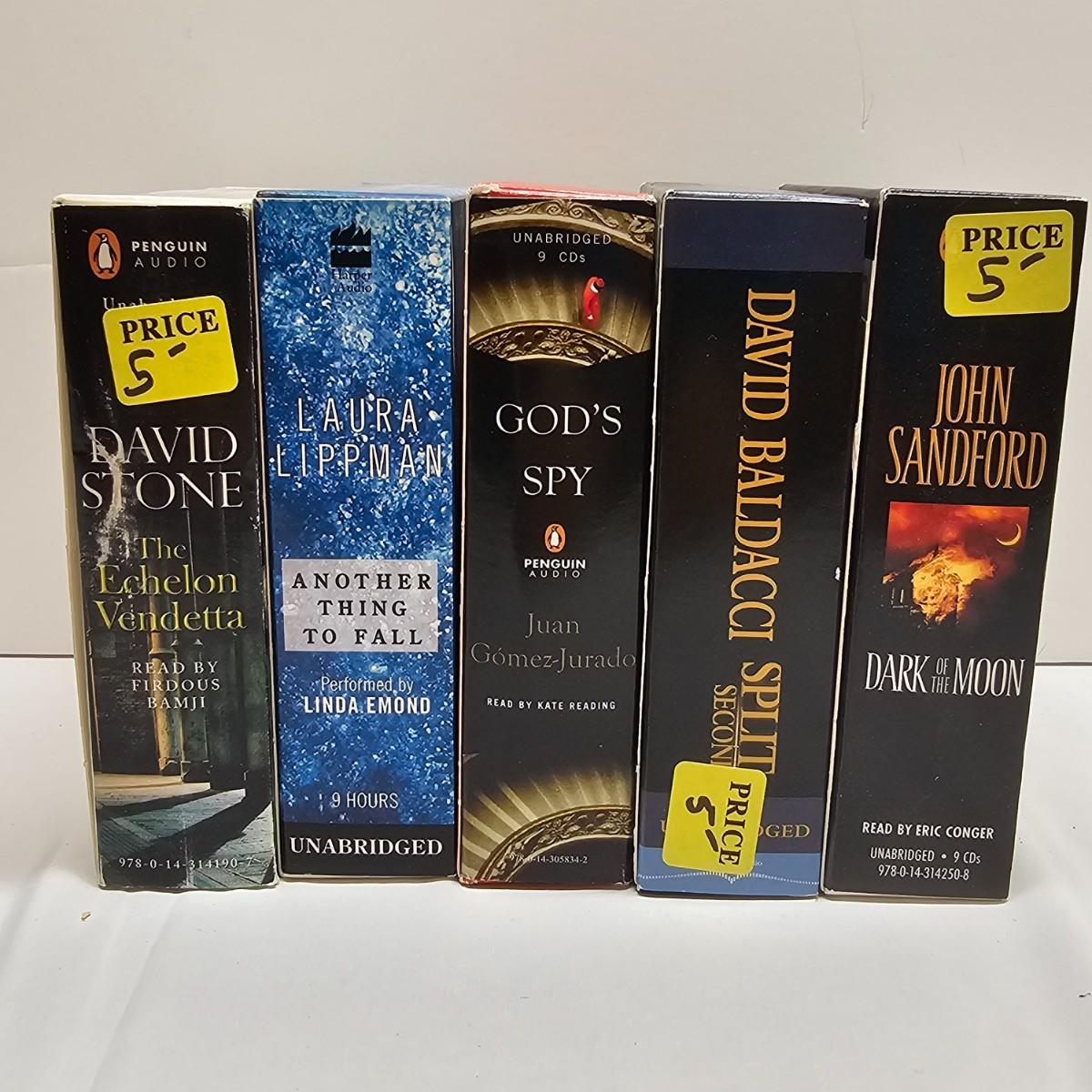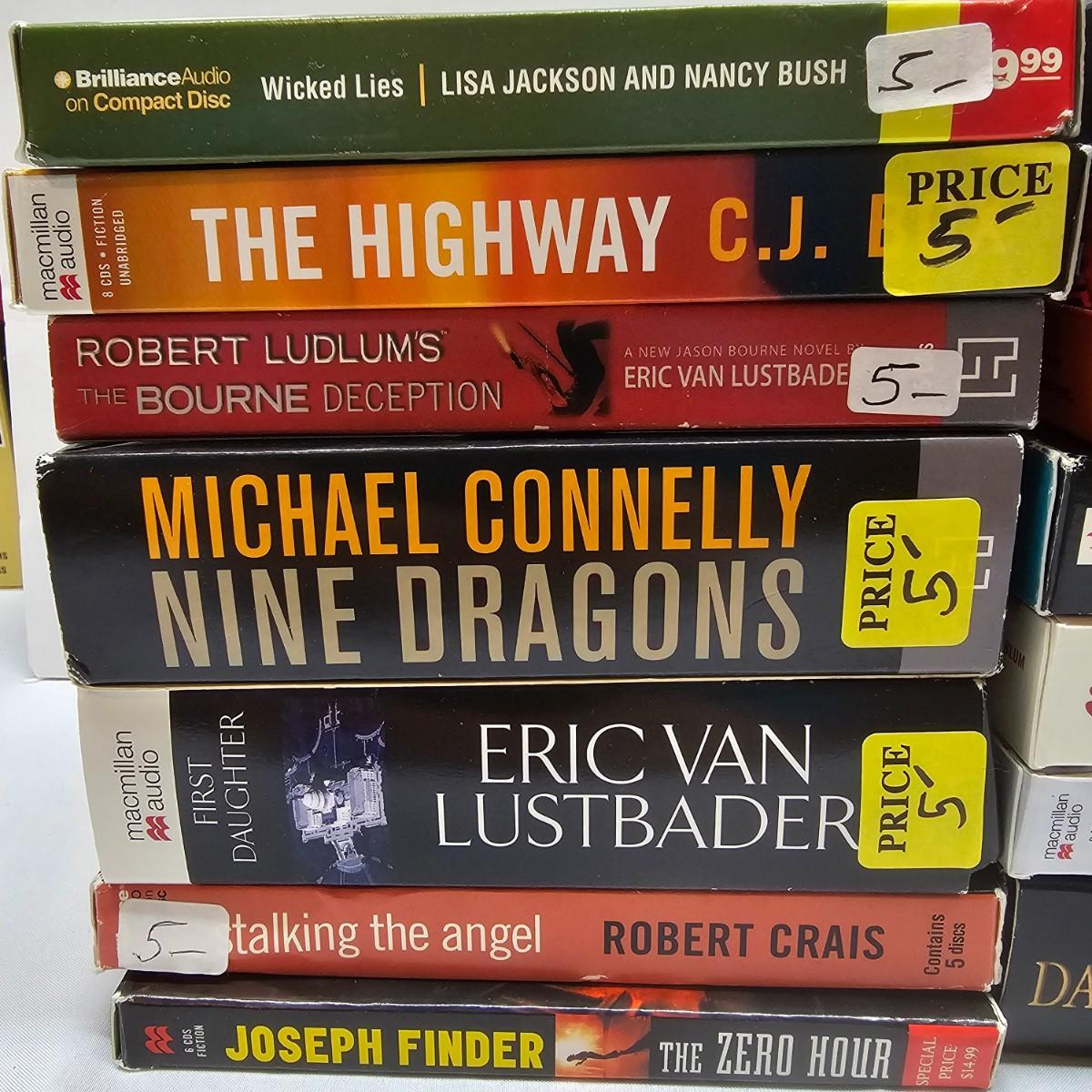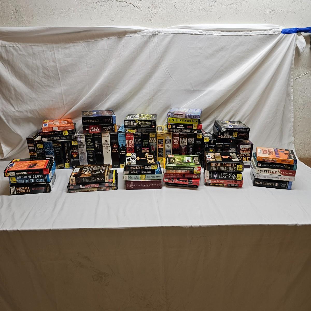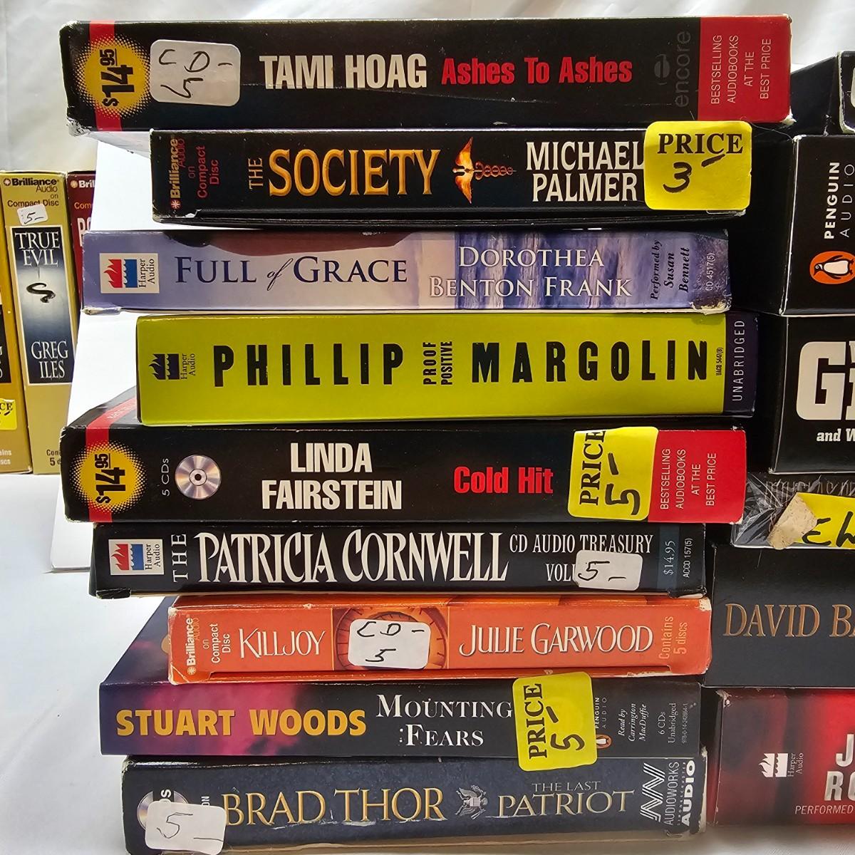 Many classic and exciting titles on audio CD by some well known authors. Over 60 different books by such as David Baldacci, W.E.B Griffin, Janet Evanovich, James Rollins and more. Some items NIB, others cases are well worn. See photos for details. Local pickup only.