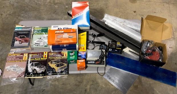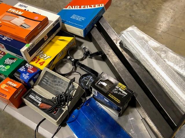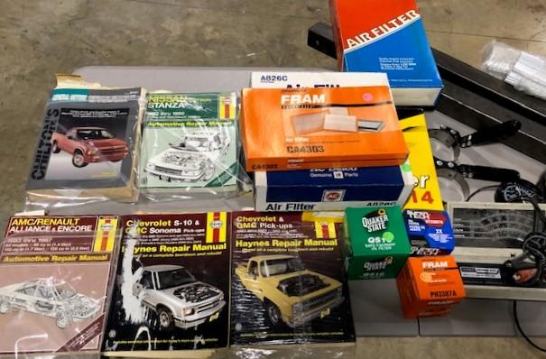 Vintage vehicle repair manuals, air filters, steel & aluminum, oil filters, GE halogen and tuneup analyzer