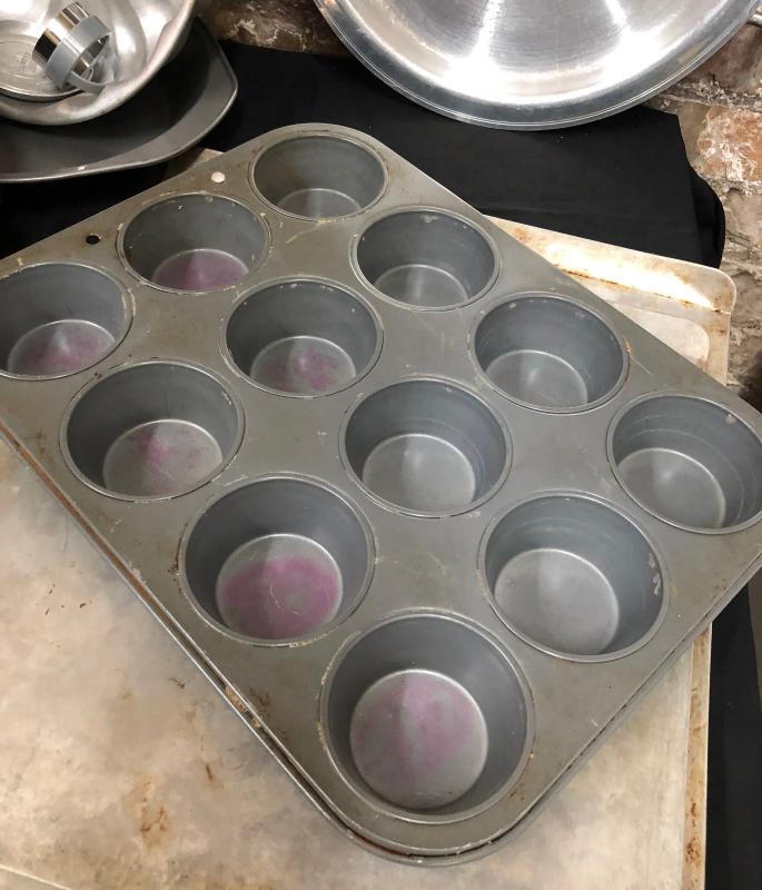 Cookie sheets...muffin tins...a metal bakeware lot in good used condition...Pizza tray and Bundt pan too