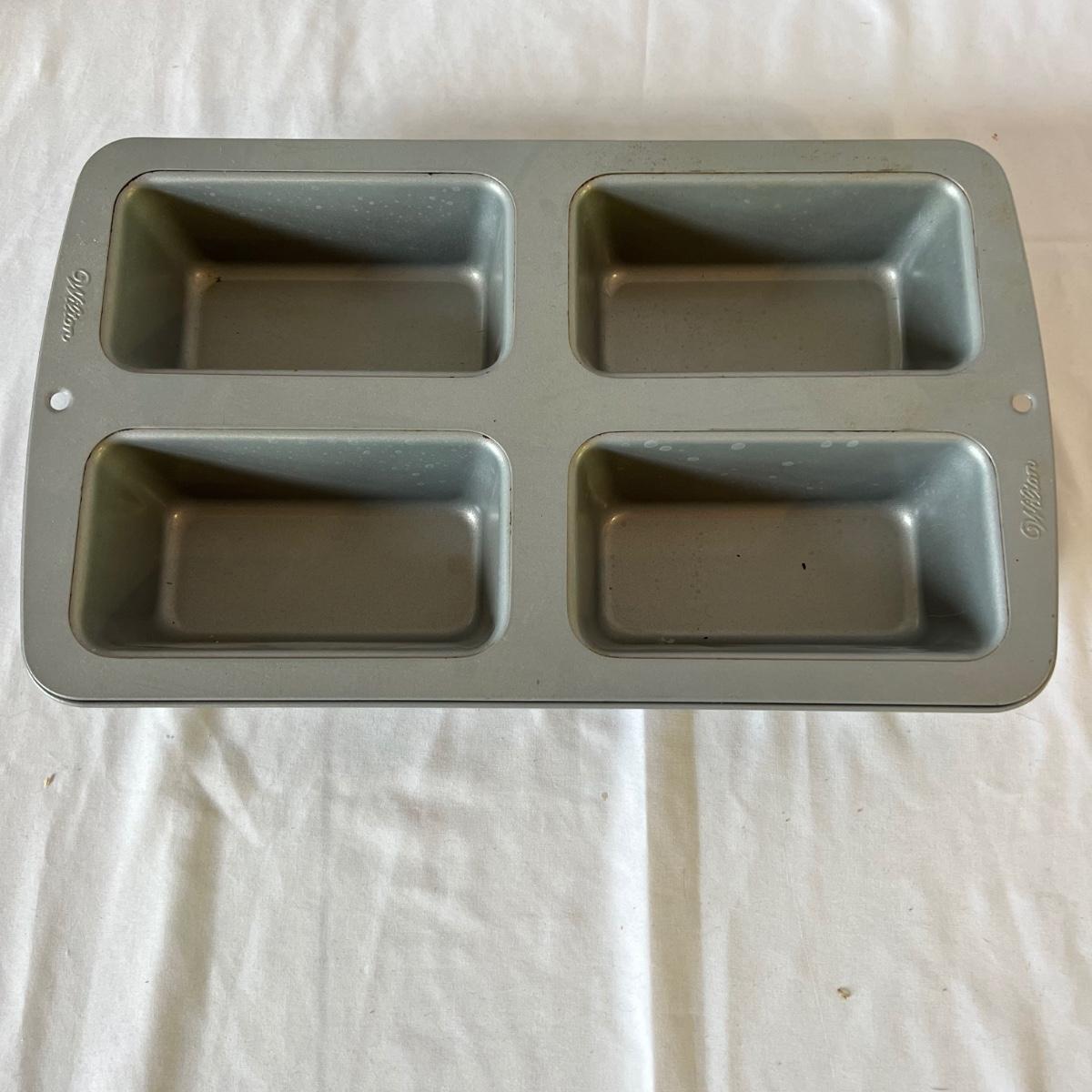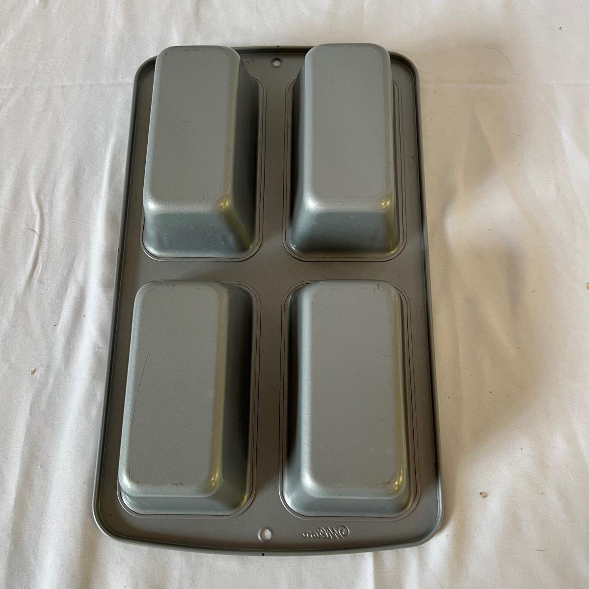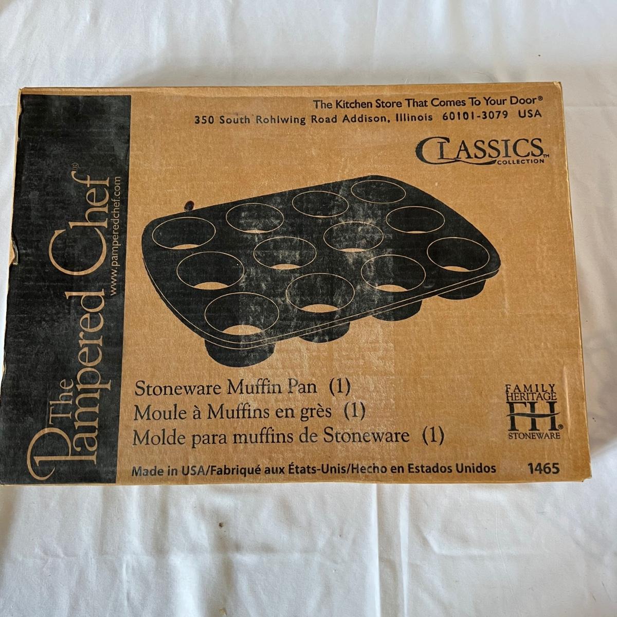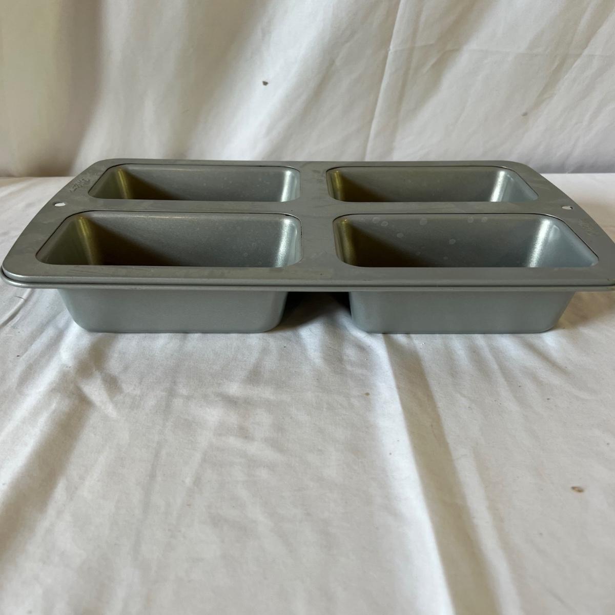 Three muffin tins, one Pampered Chef stoneware muffin pan, four drying racks, one mini loaf pan and one tart pan.