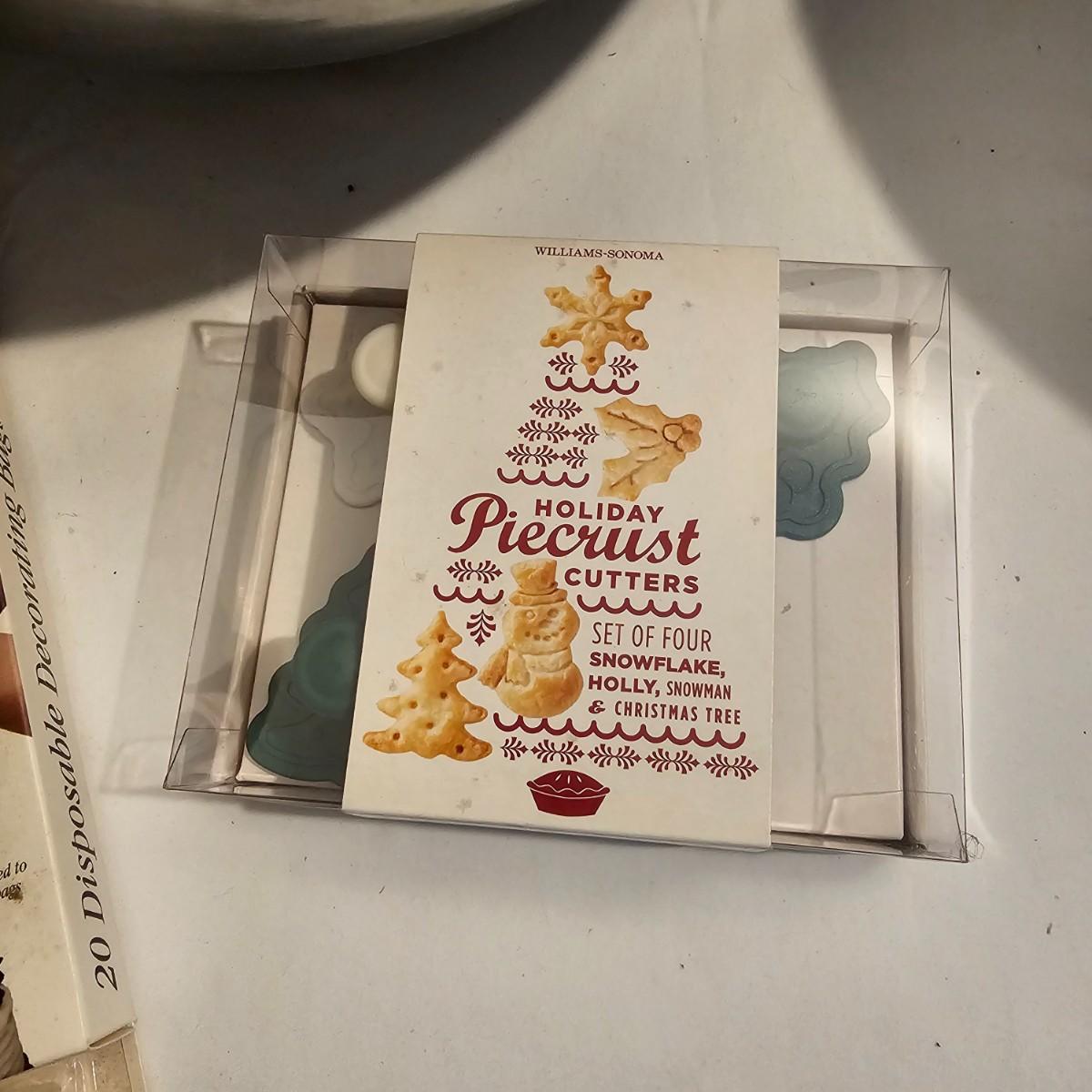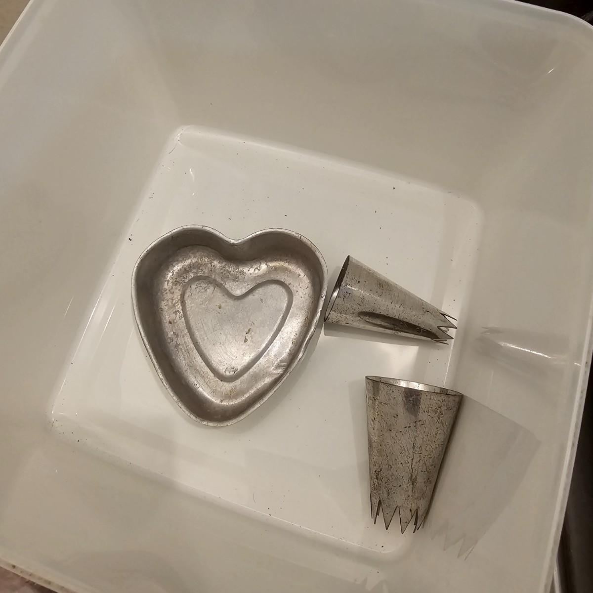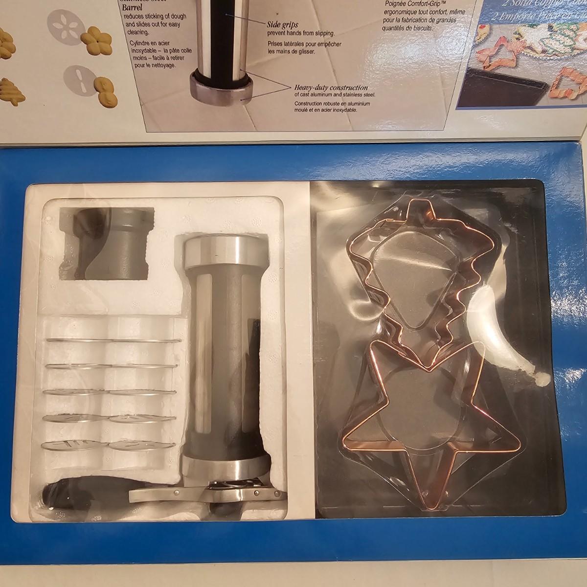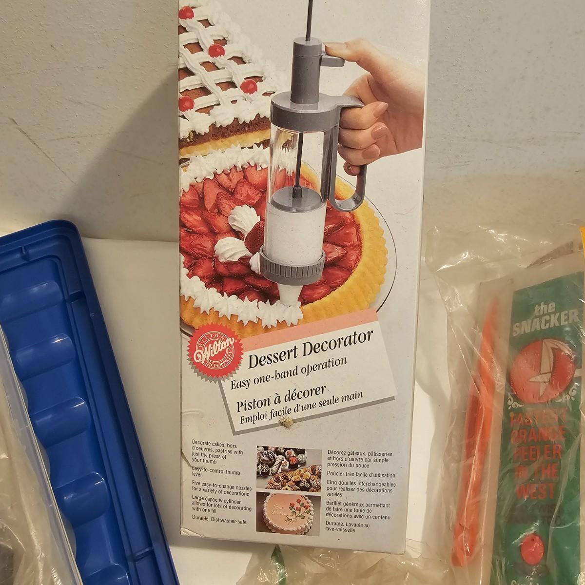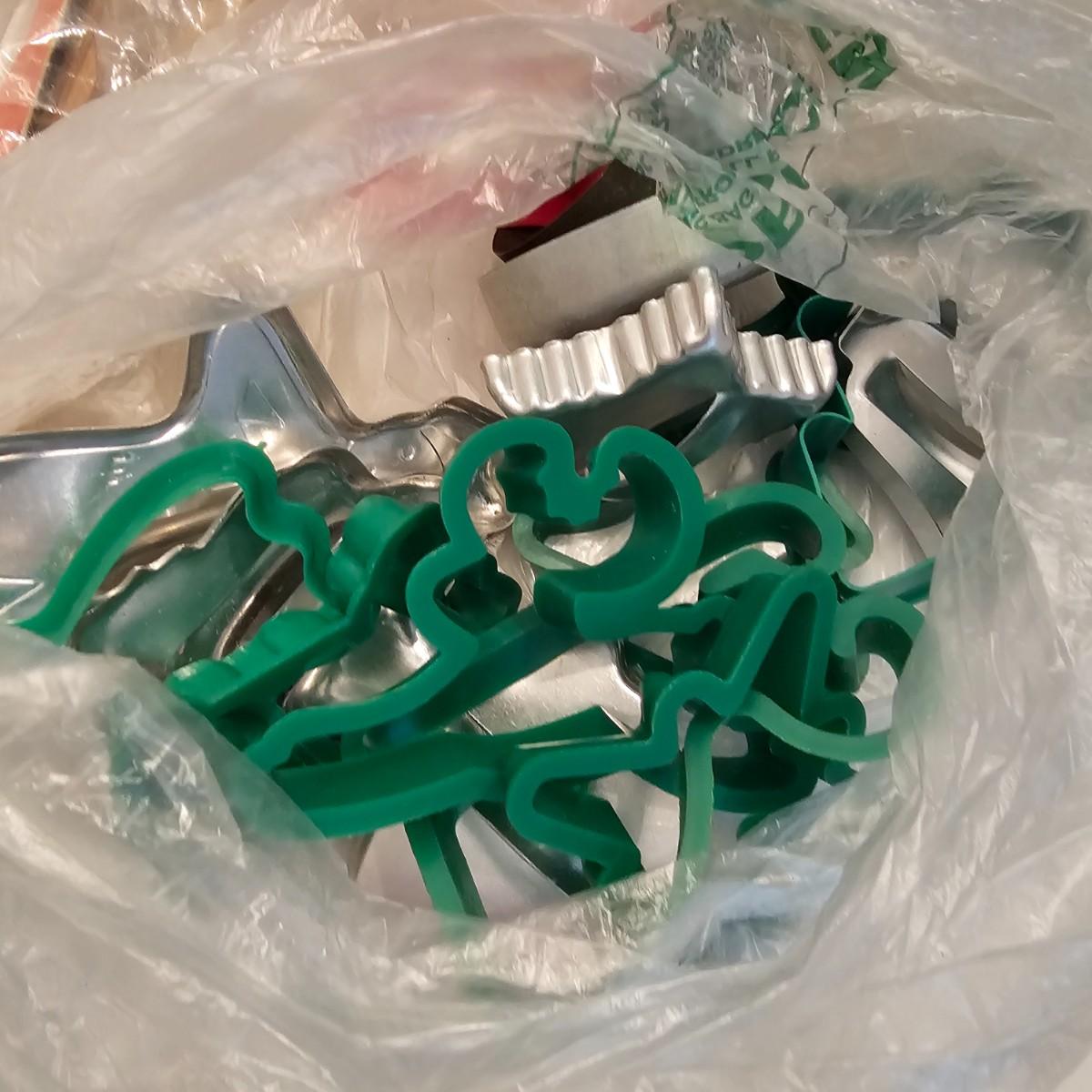 More than 40 pieces of bakeware from Wilton, Mirro, Kaiser and more. Flat trays, bundt pans, spring pans, cookie cutters and shooters, loaf pans, others. Largest flat tray is 26" x 18", large stainless bowl is 16"D, loaf pans are 9.25" x 5.25". Some newer items, some have seen use. See photos for details. Local pickup only.
