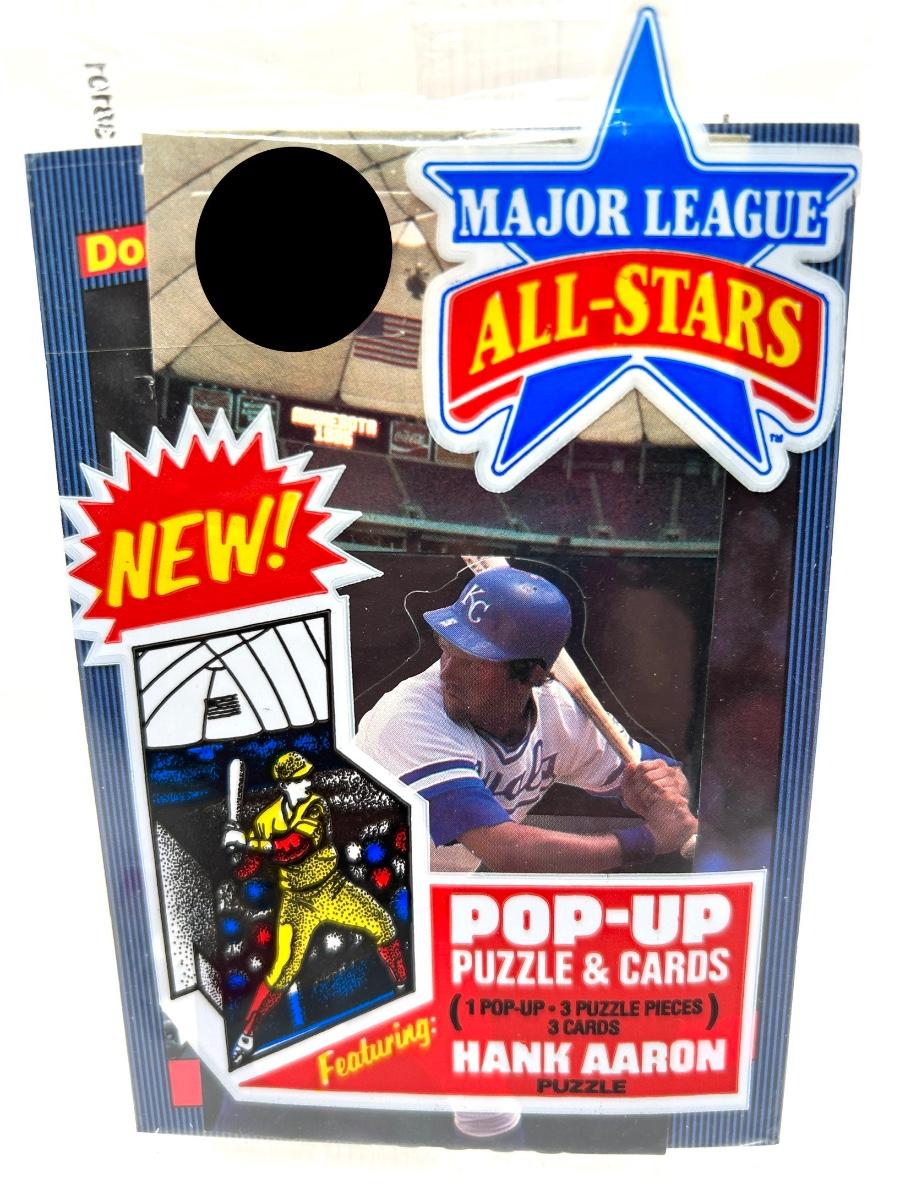 Lot includes a sealed Major League All-Stars pack featuring Hank Aaron, Ted Williams and Al Kaline Hall of Fame cards and a JR Richard round card. All are in good condition.