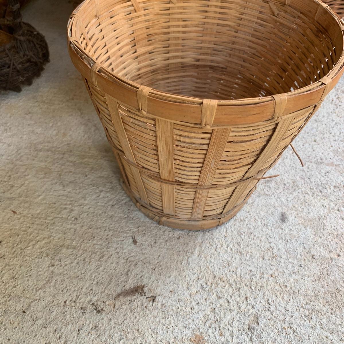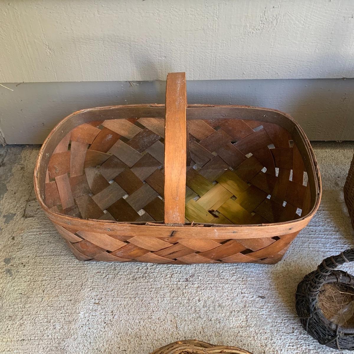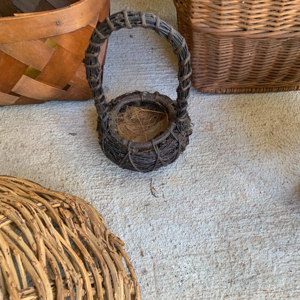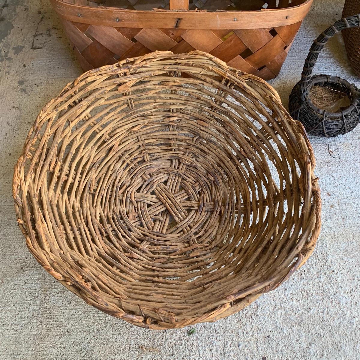 This lot includes Five baskets that are different shapes, sizes, and styles. The largest measures 16” X 11” and stands 20” tall to the top of the handle. All are in good condition. Local pickup only